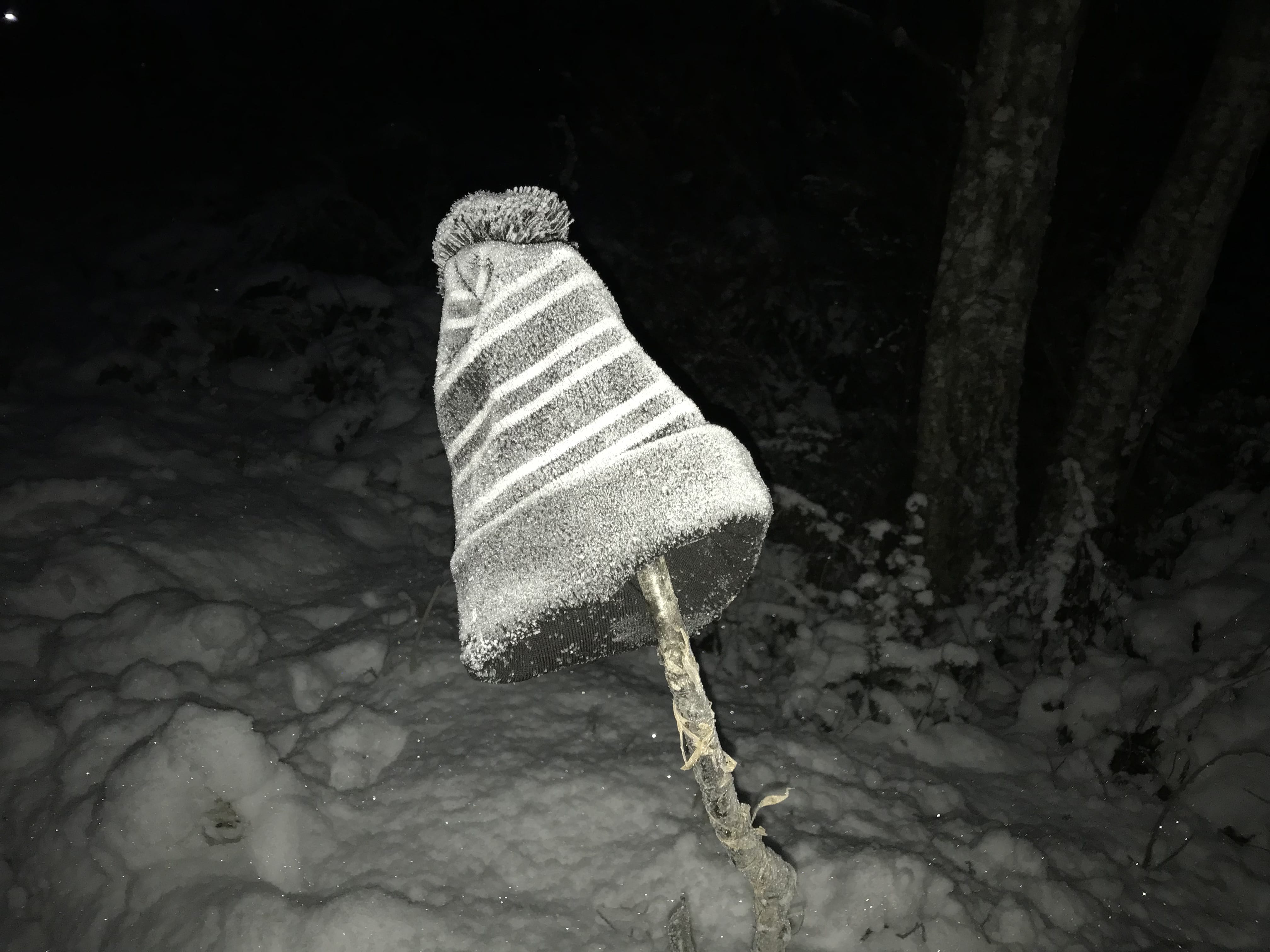 Cold, alone and abandoned. If it could talk, what stories would it tell? Was it tossed aside by an ungrateful wearer for something brighter and more bobbly or did it escape for a better life, sick of being trapped against a head of sweaty hair and dandruff? Either way we wish it a happy life of solitude in the peaceful Highlands. No score, entries invalid without a wearer.