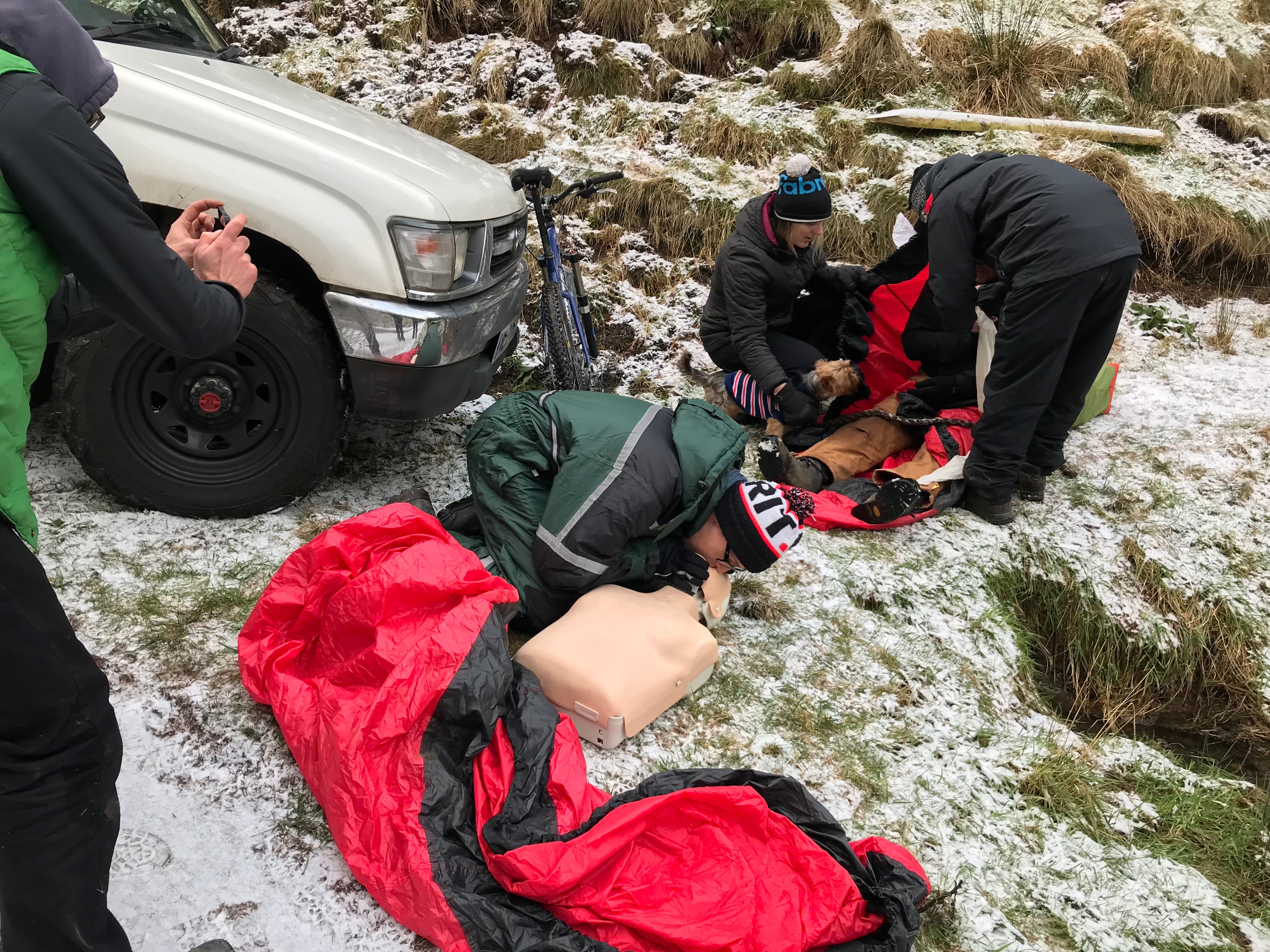 I came to mountain biking from fell funning, where there’s a good culture of mountain craft and being ready to look after yourself and others if they need it, so I always ride with an extra layer of some sort. I carry a first aid kit on most rides, but I wasn’t really sure what I’d do with it if faced with something beyond the remit of steri-strips.