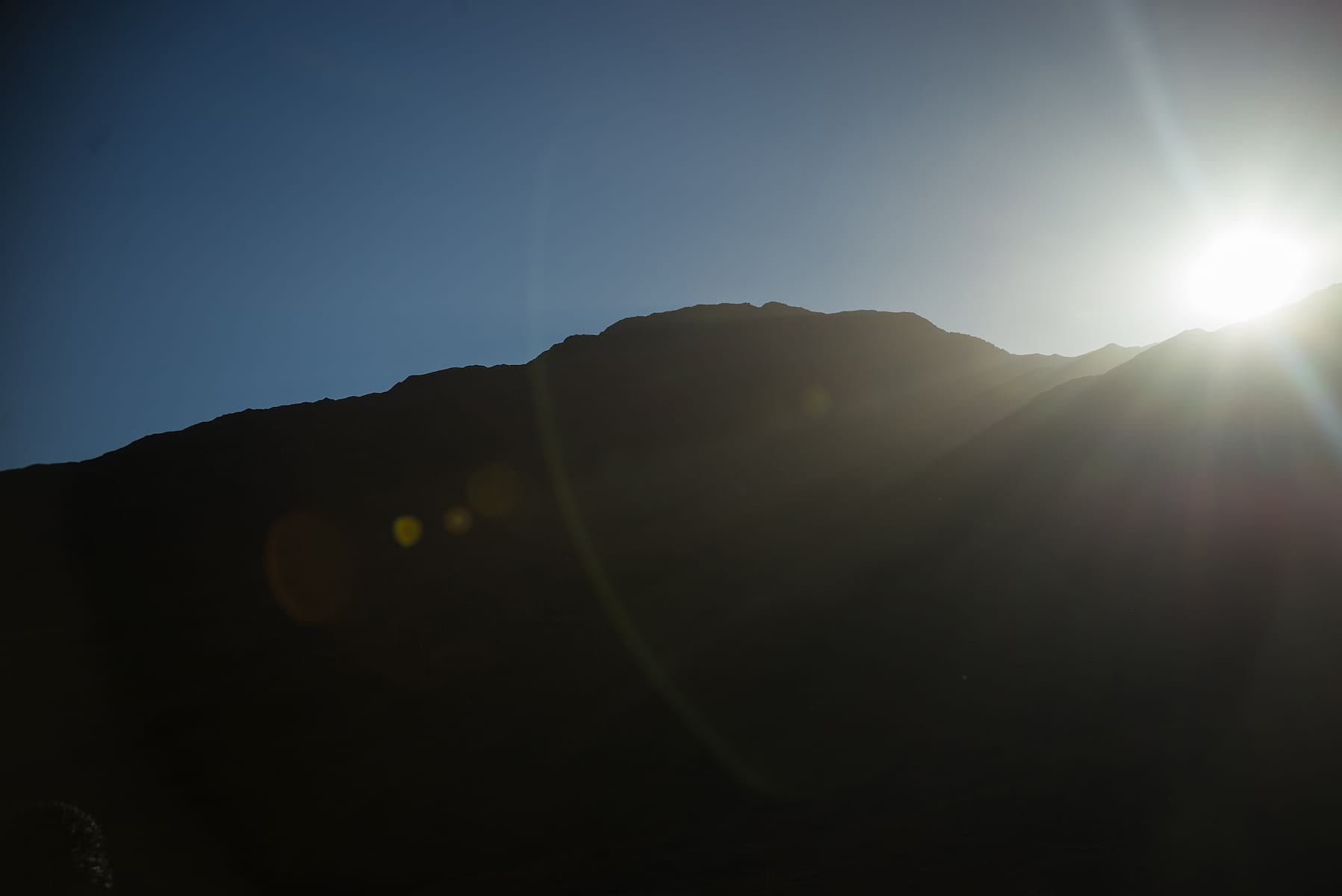 The going is quick as the glacial moraine gives the trail a somewhat graded feel and despite the damp weather leading up to the ride, the ground is firm and we’re aiming to get into the sun and bask in the first rays of dawn to get body heat back to acceptable levels. Once in the sun, we spot the remains of what was one of the many smaller steadings that would have used this path for moving both animals and bodies. Drystone walls being reclaimed by nature are the only remnants of the clearances that moved people out and put sheep in their place.