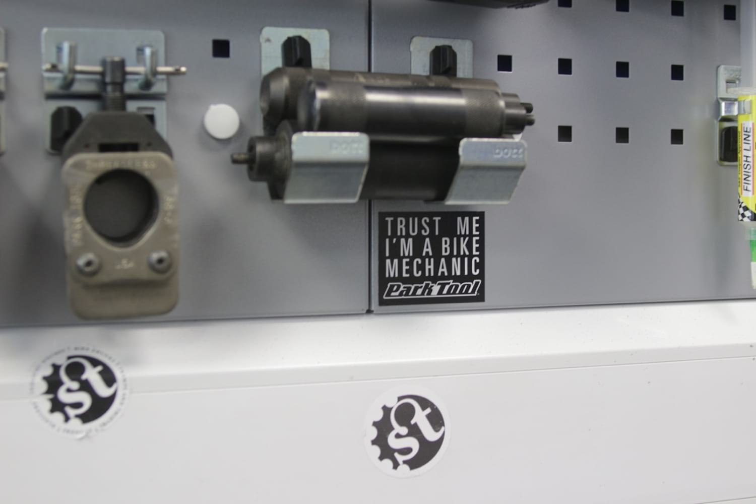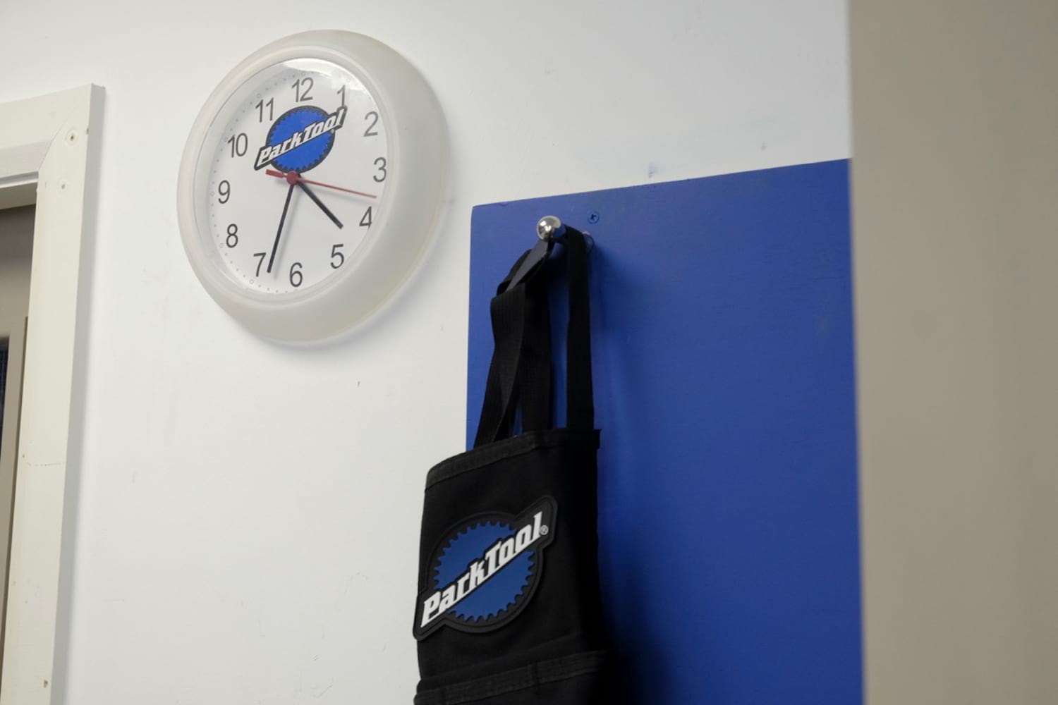 Almost nothing was spared the Park Tool makeover. Even our clock was stickered – professionally, on the inside!