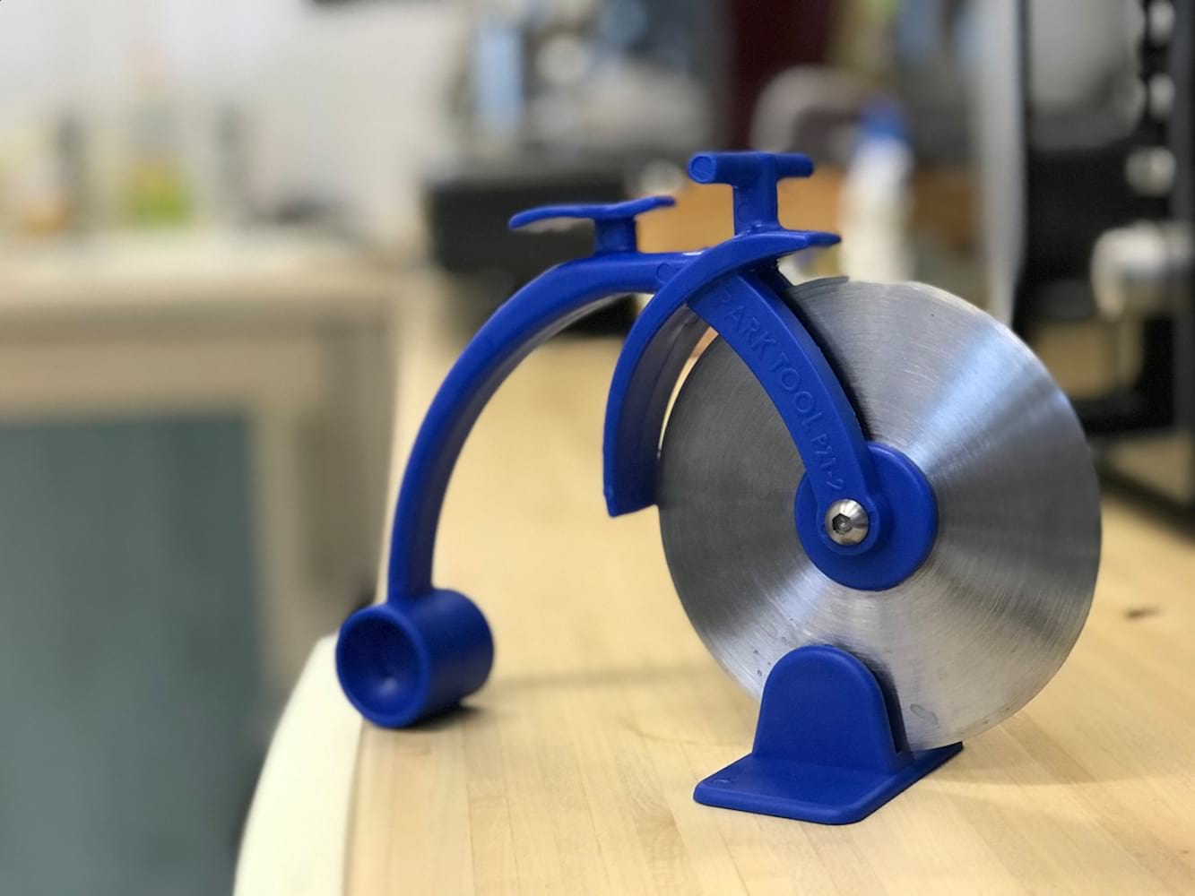 And then they were done. It was time for pizza. And then our sharp knife was a bit pants, so Nick said ‘we’ve got a tool for that’.