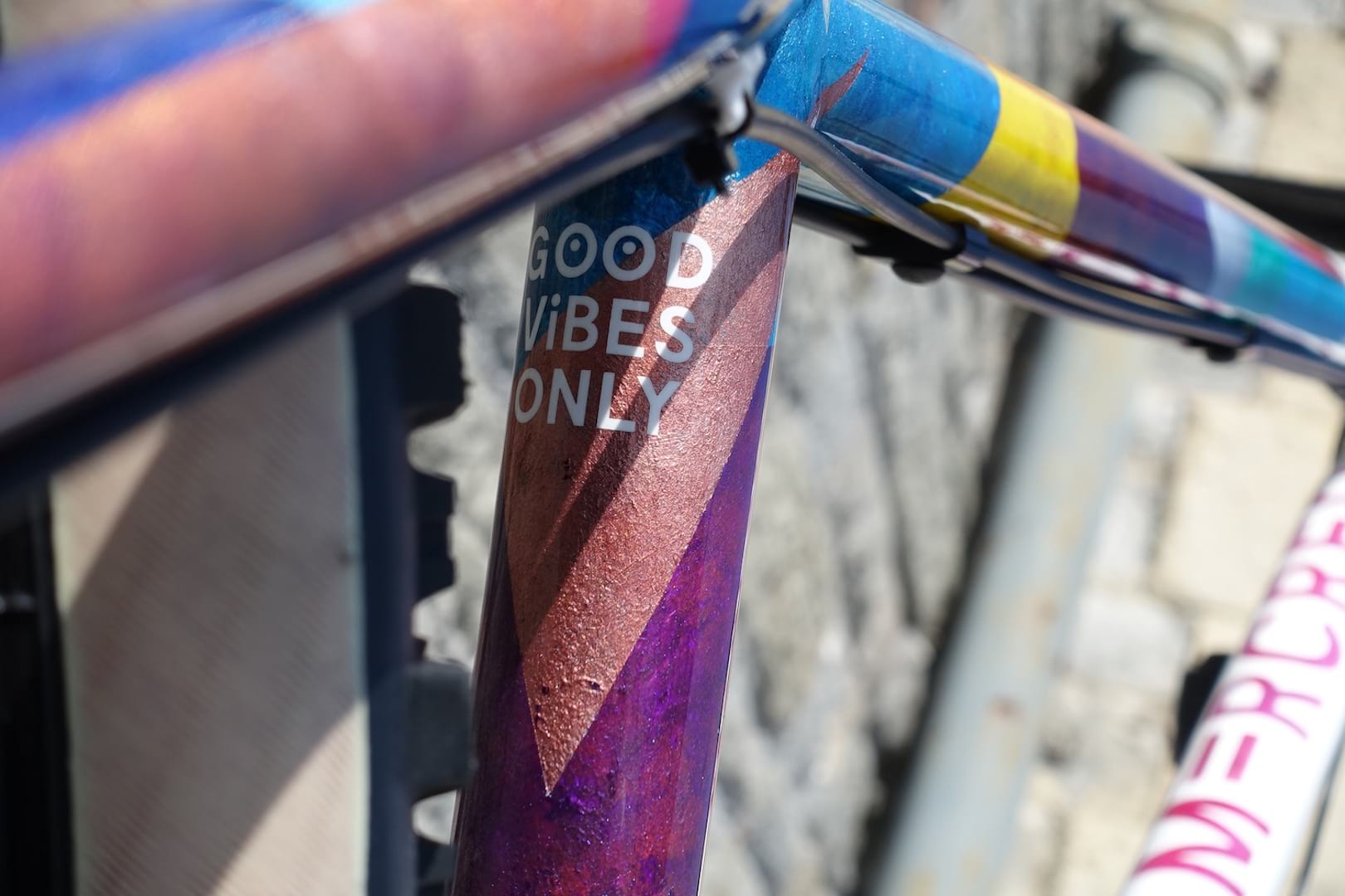 When it comes to construction, the front triangle is filet brazed (and left un-filed, like all the other Mercredi!) but the rear end is mostly TIG welded. That ensures of the solidity of the rear end, especially around the stainless sliding dropout.