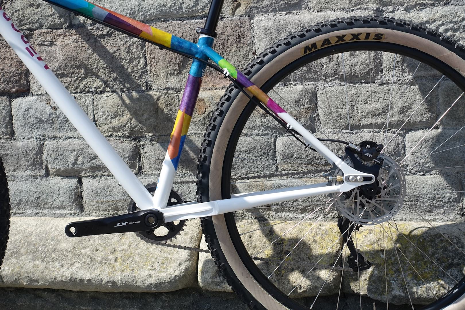 I wanted a 29er that would take 2.4 tyres, work as a single speed in the winter and 1×11 in the summer. It would be able to take a 27.2 post but also a wider diameter dropper if needed if I did want to use one in the future. It would have three bottle mounts and also be able to work with a rigid or suspension fork. Had such specific requirements and all were met. The rear is built around boost spacing and chain tension dealt with by Paragon dropouts with a 12mm thru axle.