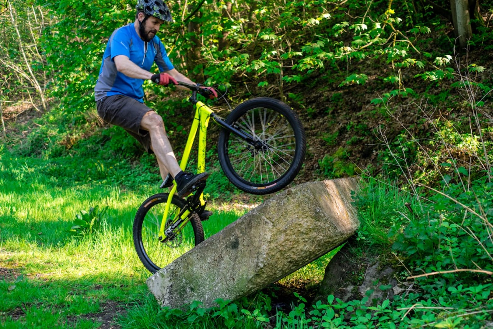 Unlike many of you, I didn’t spend my childhood ragging a bike around the woods emulating the BMX Bandits (kids, ask your parents) so I never got used to crashing for fun. I spent my time in a pool doing endless lengths and pretending I wasn’t looking at the girls. Which I was. What riding I did was mostly to and from the pool and it wasn’t until my 20s that I started to ride bikes, let alone mountain bikes. Not that mountain biking passed me by. Far from it. I certainly saw all the other kids out, having fun, playing on the dirt jumps. But I was a swimmer, I swam. Sort of like a goldfish, but with a paler complexion. But, there was this one guy in our town, with a yellow and blue Specialized, who I secretly idolised. I’d always see him at the back of the woods I cut through to get to the pool. He’d be bouncing about, hopping from this to that, face-planting, then getting up and doing it again. This was the start of the MTB trials era and I had no idea what he was doing.