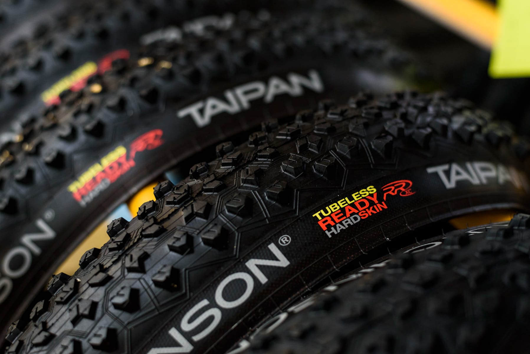 Next, we get to see some of our rubber from earlier that will become the tread. It’s already drawn out into a continuous thin strip and after being checked for thickness is coated on one side with glue and stacked neatly onto pallets. Turning a corner, we are faced with towering racks of metal cases, tagged with familiar names – Taipan 29×2.10, Toro 27.5×2.25, and Toro 27.5×2.35 (the winner of the ‘most durable’ award from our mammoth technical trail tyre test from last summer). These are immediately recognisable as the moulds which form the tread, but what’s not clear at this stage is how they are used. And anyway, before we can do that, we need a casing to stick the tread to.