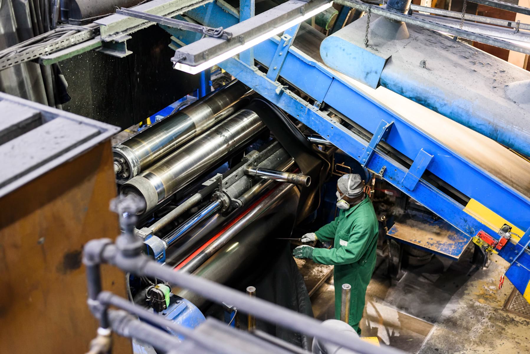 At the heart of a tyre casing is a nylon mesh, and modern tyres have either 60 or 120 threads per inch (a higher thread count means less rubber can be used and makes for a lighter, more supple tyre). In a side room from the main factory and on a machine dating from 1910, the nylon mesh and heated rubber are calendered together between heavy steel rollers. While some machines can do both sides at once, this one can only coat the mesh one side at a time, so each batch requires two passes. But the process works, and has done for over 100 years so there’s no need to upgrade just yet.