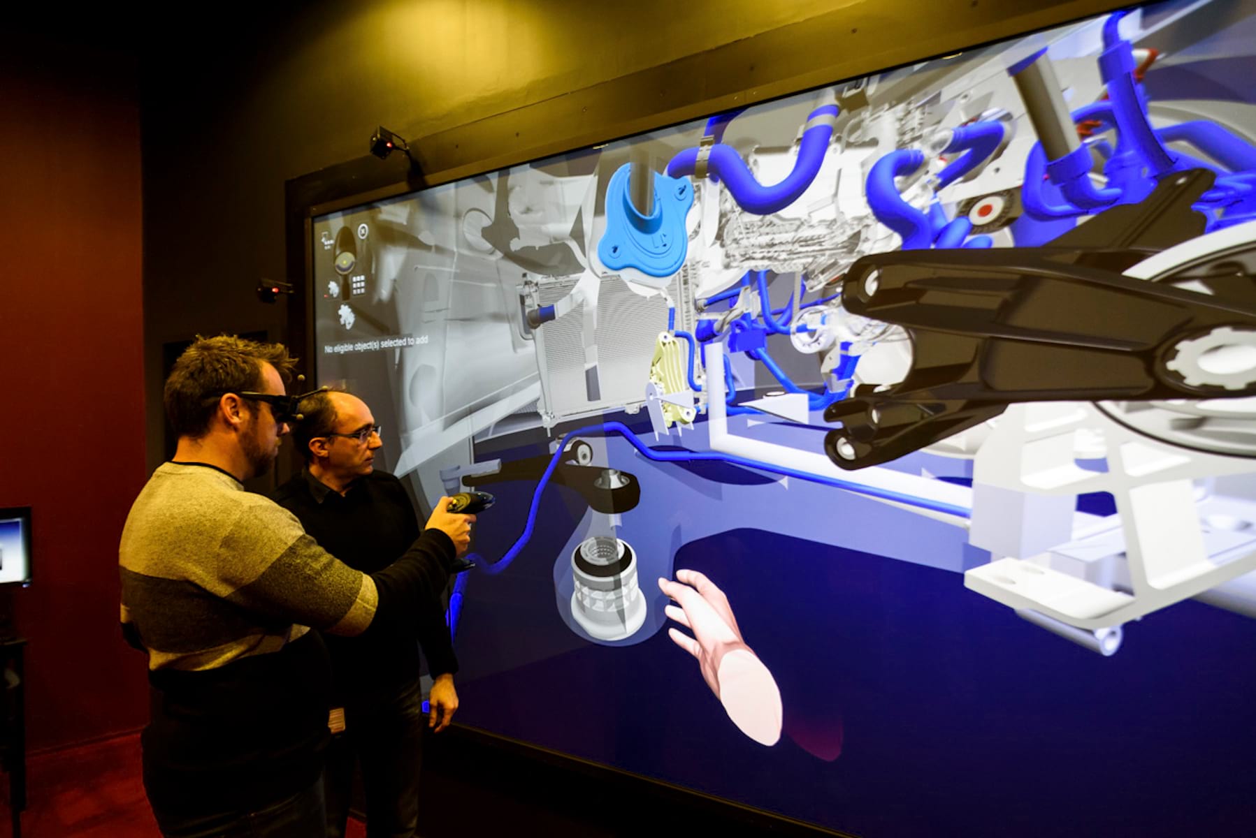 I’m here under the pretence of finding out how you turn various amounts of natural and artificial rubber, carbon black, Kevlar and nylon mesh into a mountain bike tyre, but I’m getting somewhat distracted by things that on the face of it have absolutely nothing to do with bikes whatsoever. I mean, moments earlier I was in the smaller of the two virtual reality studios, crawling through the manifolds of a small family car and slicing it apart on multiple planes to see what exactly what sized gaskets are needed to effectively deaden road noise.