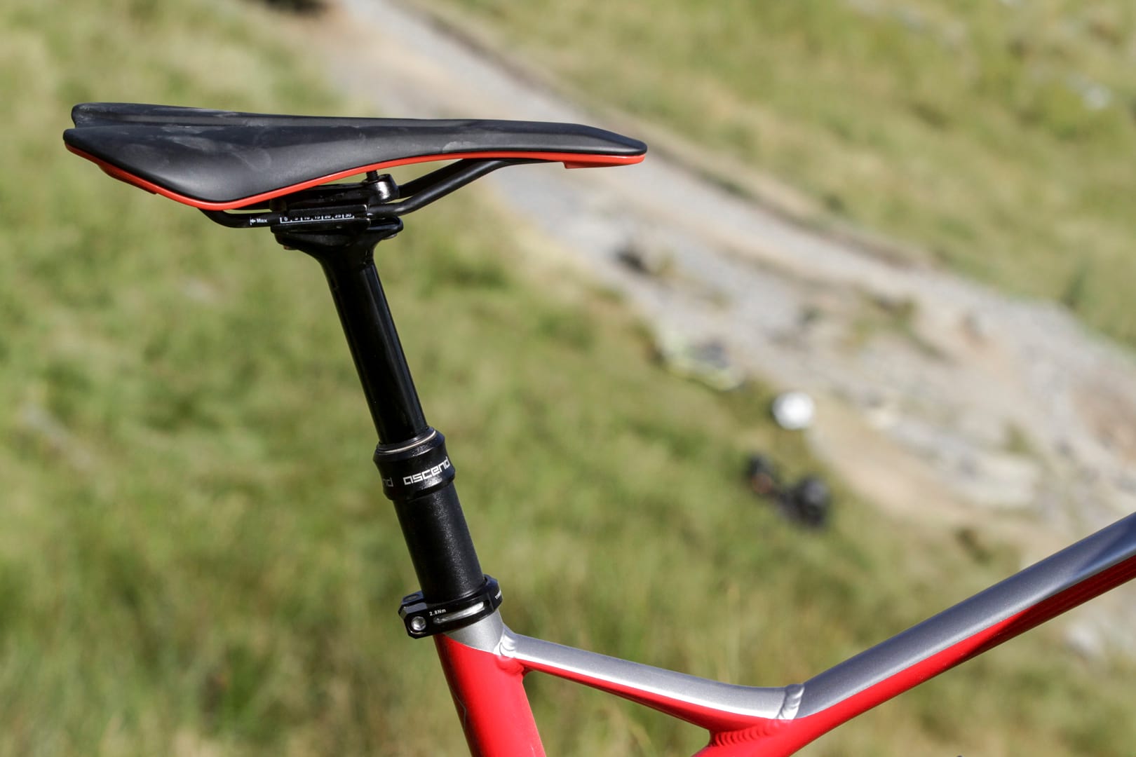 The tidy cockpit utilises the SRAM Matchmaker to keep the cockpit neat but the RockShox Reverb ergonomics would have been improved for me by the under bar shifter-style trigger (perfecting the fit for my freakishly small hands) rather than the push-button lever supplied.