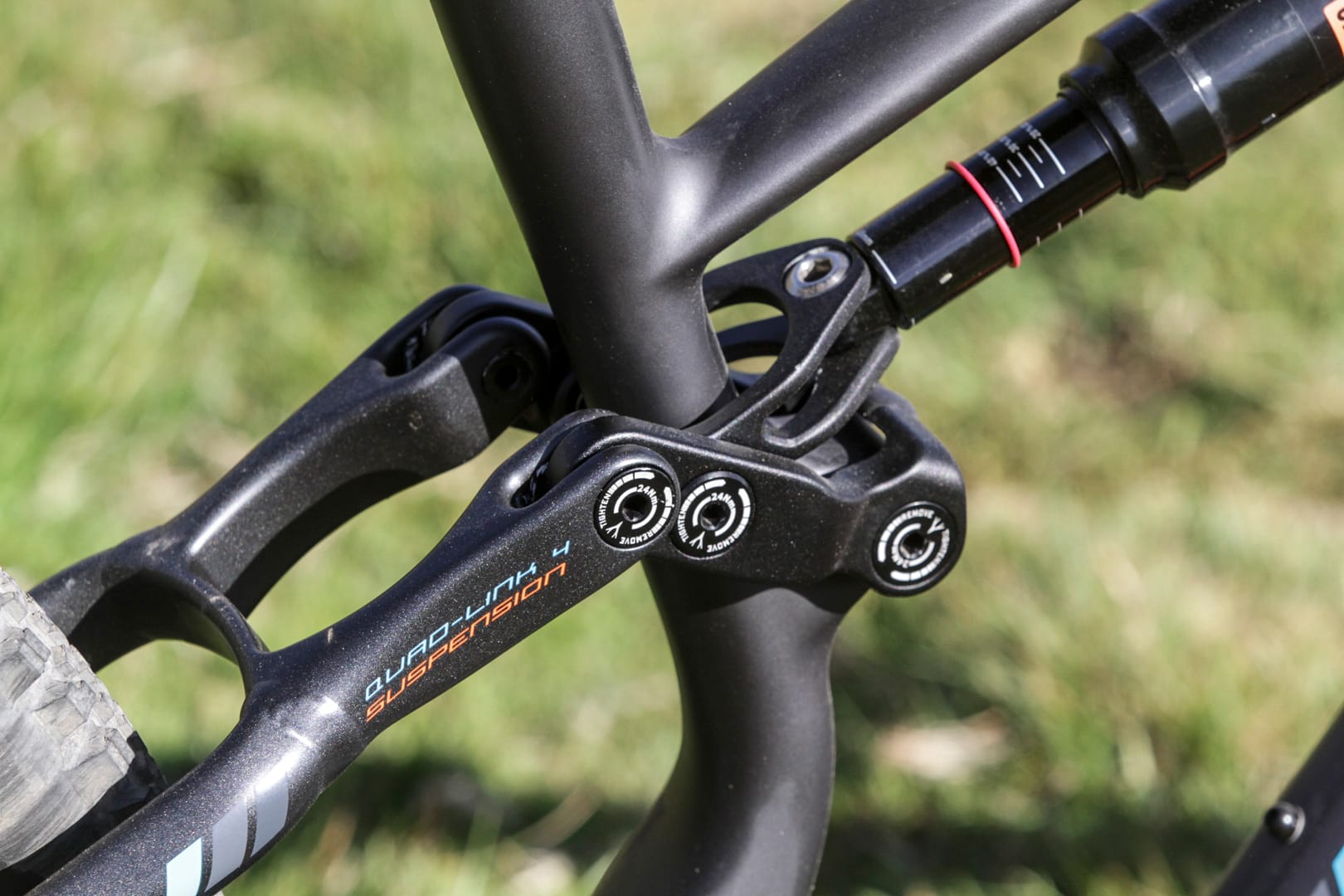 The Ink paint on the test bike we have is high quality and the glossy finish looks like it could take a knock or two. The rest of the frame finish is extremely well thought out with all external cable routing (apart from the stealth dropper obviously) making life easier for when maintenance is due. The frame features a threaded BB shell, a bottle cage mount and the bottom linkage is embellished with grease ports to guide fresh grease directly to the bearings to prolong their life.
