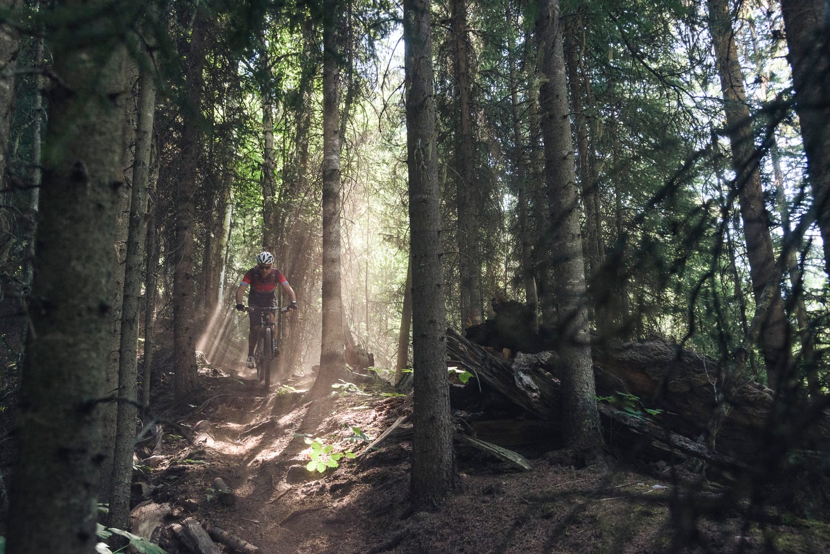 Once we returned to basecamp we were shuttled up Hudson’s Bay Mountain. At the top, advanced riders took the guided tour down Backdoor – a double black diamond ride with no ‘out’. The commitment started with loamy subalpine and wide open singletrack that made full use of the rolling terrain. As the trail got steeper, it also became more technical with roots and rocks that seemed to go on forever as it wound through the open of the ski runs and patches of trees that divided them. Strong riders could let off the brakes here and pick up speed to float through the rough sections, popping off little hits along the way. Finally we hit the forest at the bottom and the trail changed again, with loamy and impossibly fast sections with natural trail features broken up by steep chutes, tight corners, and a sprinkling of man-made senders for good measure. Adam, among others, loved it and he listed it as one of his all-time top five trails.