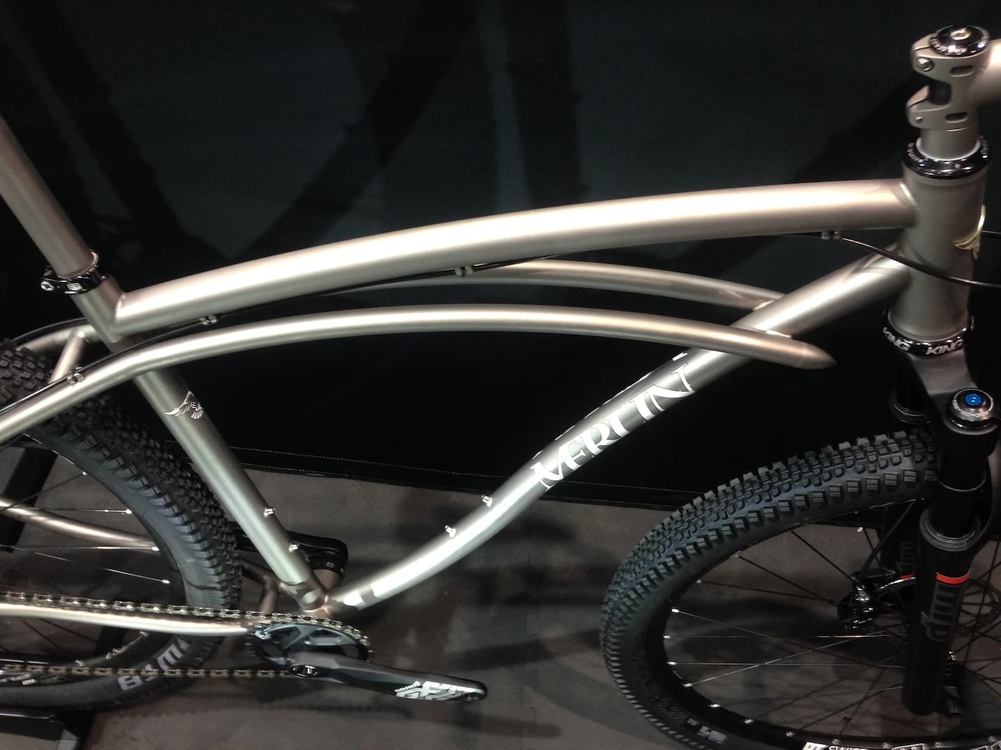 Merlin is the Black Sabbath of power metal titanium mountain bikes. Pretty much the first maker of durable Ti and MTB, after some abandonment and a time at Real(ly)/Competitive Cyclist online, it has found its rightful modern home and will be back to full-custom capability. Dean Bicycles, for more than 30 years a maker of titanium frames and components, has purchased Merlin and, much to the delight of everyone, put together classic designs with “modern” tech, just like the Sabbath ’85 Live Aid show. While only eight of the classic Newsboy cruisers will be produced, coming with any finish/graphic/mount and whatever-you-want geometry at $5000 each, only seven are left because I placed dibs on one for Chipps. Can’t afford that princely sum or worry about axle standards (cause, really, do you want to ruin your Ti bike with slider/multi drops?), then you should consider a wrist friendly Ti stem/bar combo. Alternately, check the more to-the-point Motorheady Dean’s surprisingly affordable and comprehensive lineup of n+1 bikes. Here is a highly questionable idea: Merlin should make a Trimble inverted 4 cyclocross frame and call it the War Pig.