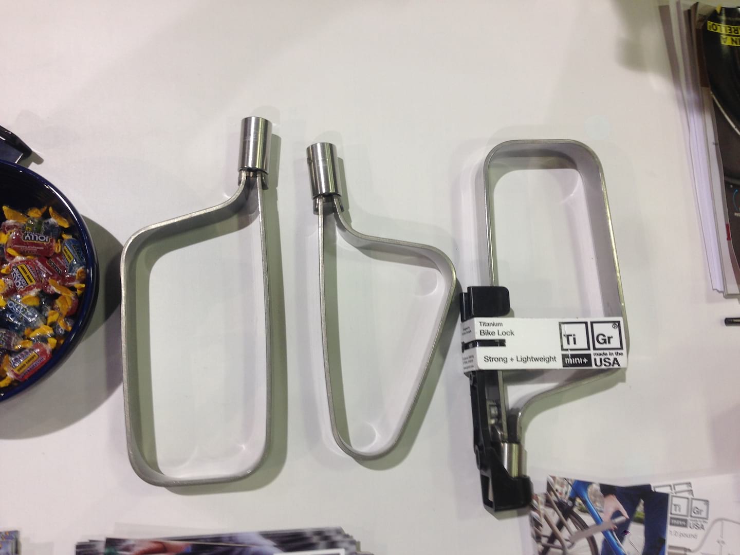 Let’s not lead with our right and, instead, focus on something small, great, overlooked and fresher, like Fugazi: TiGr locks. These locks are in their second generation, having initially launched from a Kickstarter offering. No one likes waiting around with a bike locked outside where you can’t see it, so these locks are made of a Ti alloy making them remarkably strong and cut resistant (have you ever tried to machine or even drill for water bottle boss rivnuts on a Ti frame?), while the flat bar shape retains Ti’s springiness, enabling one to open the loop to grab whatever anchor you need. I’m a pretty fair-weather rider and spend wayyy too much time in bike shops, so for you all, I will note: of course Ti never rusts, gets old or fails to be well received at the bike shop, like Fugazi! It comes in two sizes/shapes and has a clever lock that snaps quickly in place.