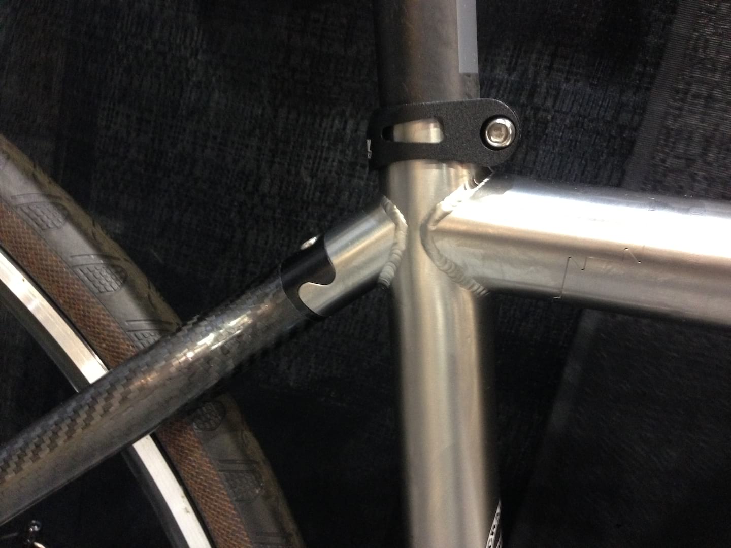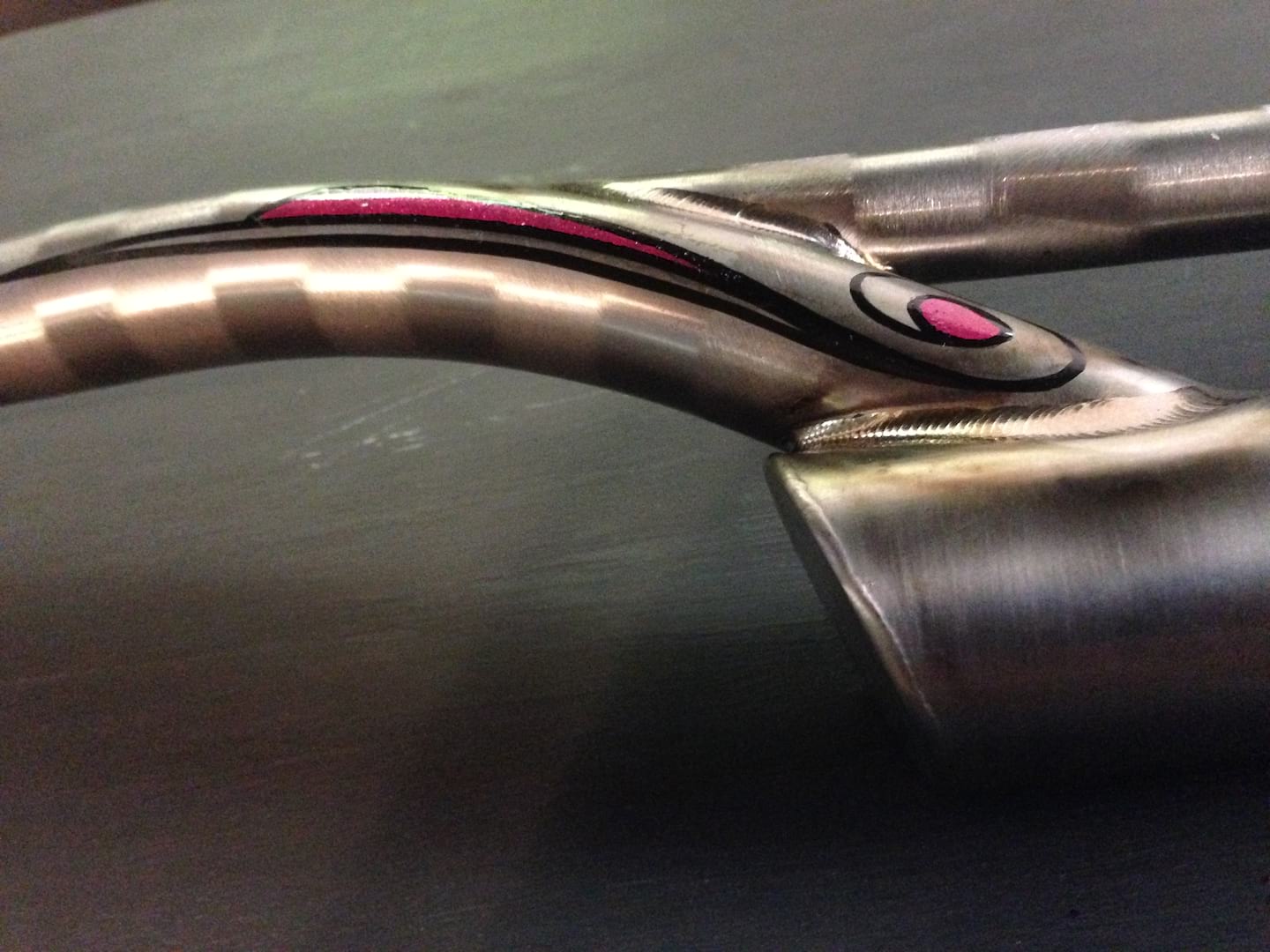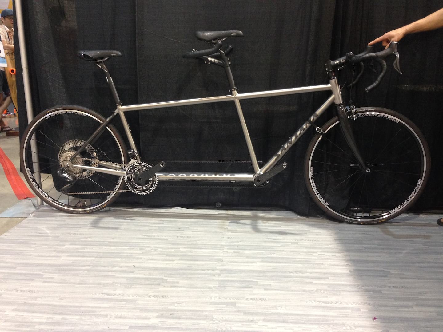 Like Carlos, calling Santana Bicycles metal is a stretch, especially as their flagship is a perfectly uninteresting shapeless plastic bike but, like the axe master, these tandem builders are and have metal influences. Santana has been making the rare single, tandems, triples, quads, quints and even hexes since 1976 in a wide array of price points and styles, lately becoming more road and travel focused with many frames having couplers for travel disassembly. Topping their metal charts, the Exogrid Synergy, is really a head turner. Constructed with Ti tubing that has been perforated (with logo and diamond patterns in this case, but the possibilities are endless; you may now, for a moment, mourn Titus), then lined with a carbon fiber sheet, which is compression molded, keying it three dimensionally into the perforations an resulting in a hybrid carbon tube that is weldable. They claim the result is a rigid, light, organic tube which rides great and is readily weldable at the ends. For you Singletrack readers, this metal is probably not dirty enough, so know that Santana supplies these tubes to a select few other companies (Dean) who know WTF they are doing when welding a tube with integrated carbon.