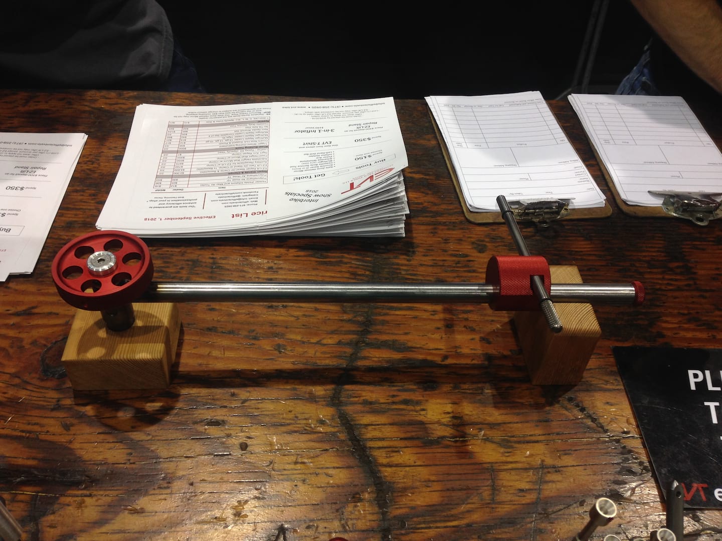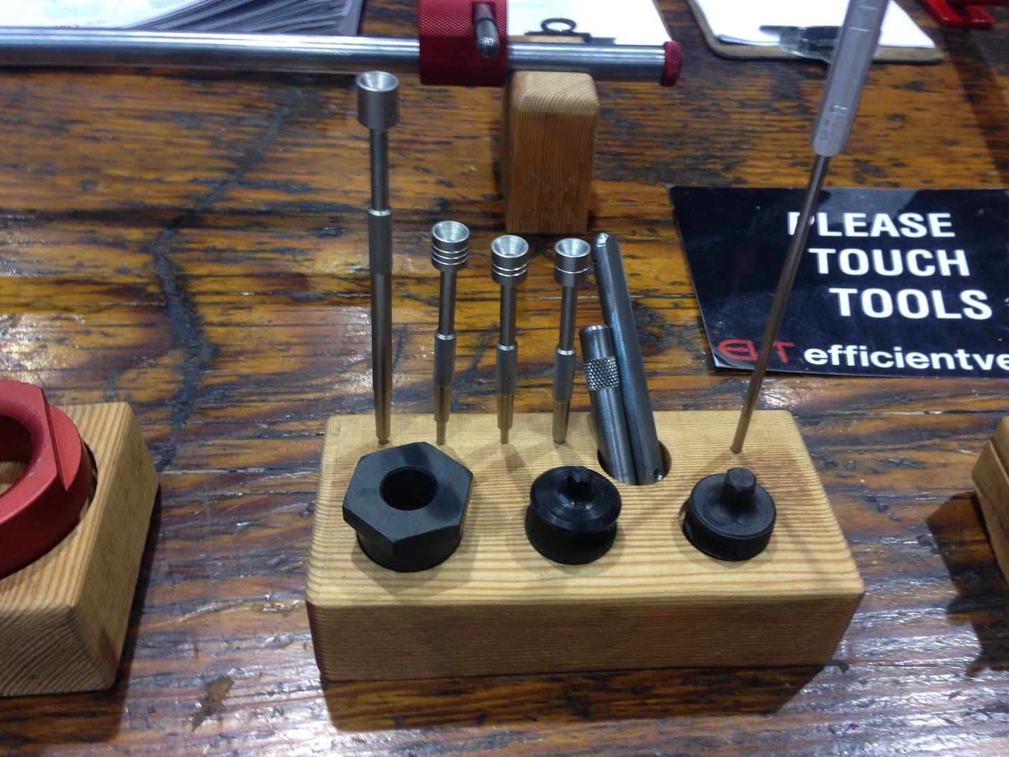 Like a Danny Carey track, Efficient Velo Tools (EVT) is the maker of a wide range of very metal specific creations crafted in a new meets old-world fashion. The unifying theme in Tool is precision, something EVT sought to achieve in one of their first products the (now, Ultra) Tru-Arc derailleur alignment tool/guage. It is phenomenally smooth and play-free with an indicator rod that pivots to move around stays. Even though I can’t recommend it because it only works with skinny valves developed for road bikes Wil reviewed the EVT Bleedin’ Guage here and found it to be flawless, so will you, too, especially if you ride plus or fat bikes where pressure is critical to performance. For those operating at higher pressures, incomes and weights, like ebike owners, EVT makes an ingeniously counterweighted Ez-lift repair stand that provides 18 lbs of pull on the clamp arm. Like with Maynard and the boys, using common instruments of creation and some off-the-shelf components, one is left wondering how does EVT craft things so precisely? I really like those pokey nail set looking things, that are actually precision machined spoke nipple grabbers, making all wheel building, but especially on deep section rims (note that extra-long one for really deep), much faster.