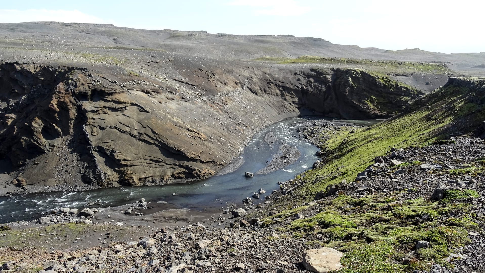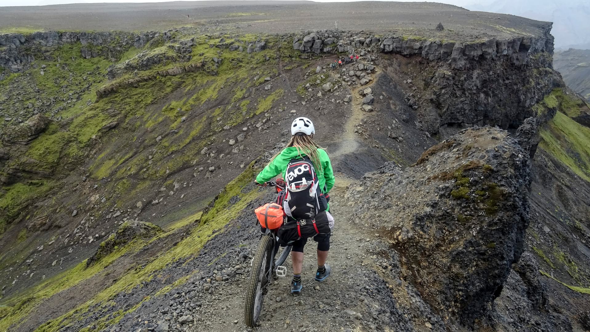 The first climb is roughly equal to riding up Snowdon, a ride I guide ten or more times a year, so even given the extra weight of a week’s worth of food and equipment I was confident in my baseline fitness. This confidence evaporated rapidly over the first hour; two hours in I was lying in the middle of the track cursing my lack of fitness. After a few hours I met four Canadian riders heading down the trail in the opposite direction who stopped for a chat, mostly from curiosity. They offered me a ride around from Skogar into the next valley so I could skip this first day; the one they said is definitely unrideable on a fully laden bikepacking rig. I was torn – there was no way I wanted to give up already, but these guys really did seem to know what they were talking about; they were real bikers who’d just done my ride the opposite way around.