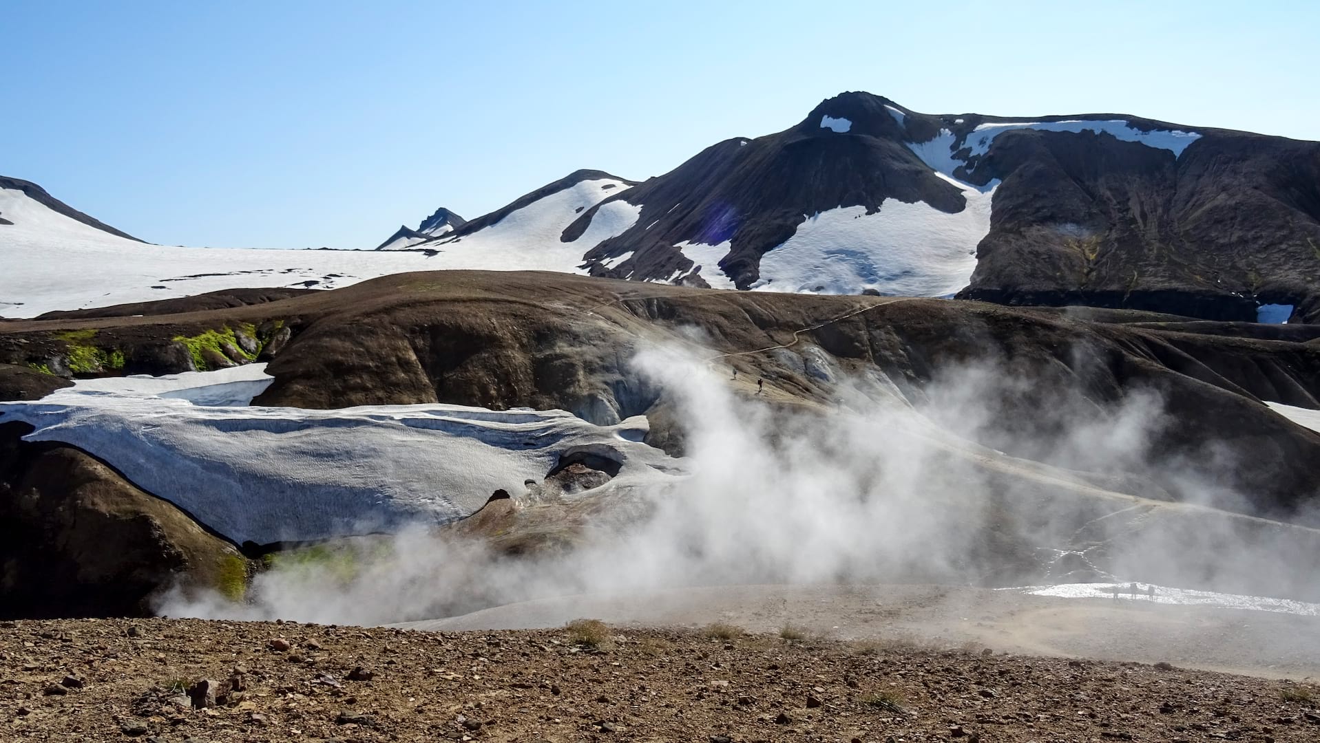 The next two days to Landmanalugar saw me pass through some of the most unique and incredible scenery on earth, while inside I was gripped by an emotional roller coaster of epic proportions. I bounced from being overjoyed by the awesome landscape to being plagued by doubt. Creepingly slow progress made me question the wisdom of my itinerary (despite knowing very well that this entire trip was achievable in the time frame I’d set myself). I stopped often to talk to hikers heading the other way to distract myself from the little black dog of anxiety who’d invited himself along on my trip. Those I spoke to marvelled at my ability, my strength and tenacity for taking on a solo trip like this, on a route they were finding tough going on foot. I basked in this while it lasted and felt my spirits lift, but as soon as they turned and continued their journey south, my little black dog came straight back out, snapping at my heels. While crossing fields of obsidian, I spent the whole time flitting fearfully between envisaging the damage it could do to my tyres, then to the damage it could do to my knees. But when I finally started to descend toward Landmannalaugar, the scenery got the better of my self-doubt and I was, once more, utterly captivated by the sights spreading out before me.