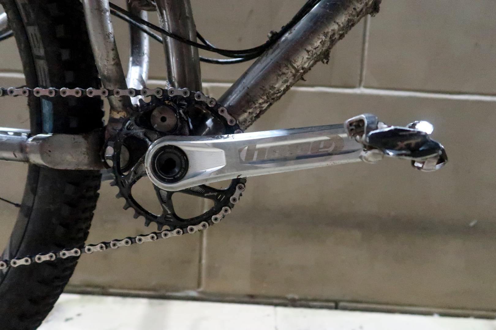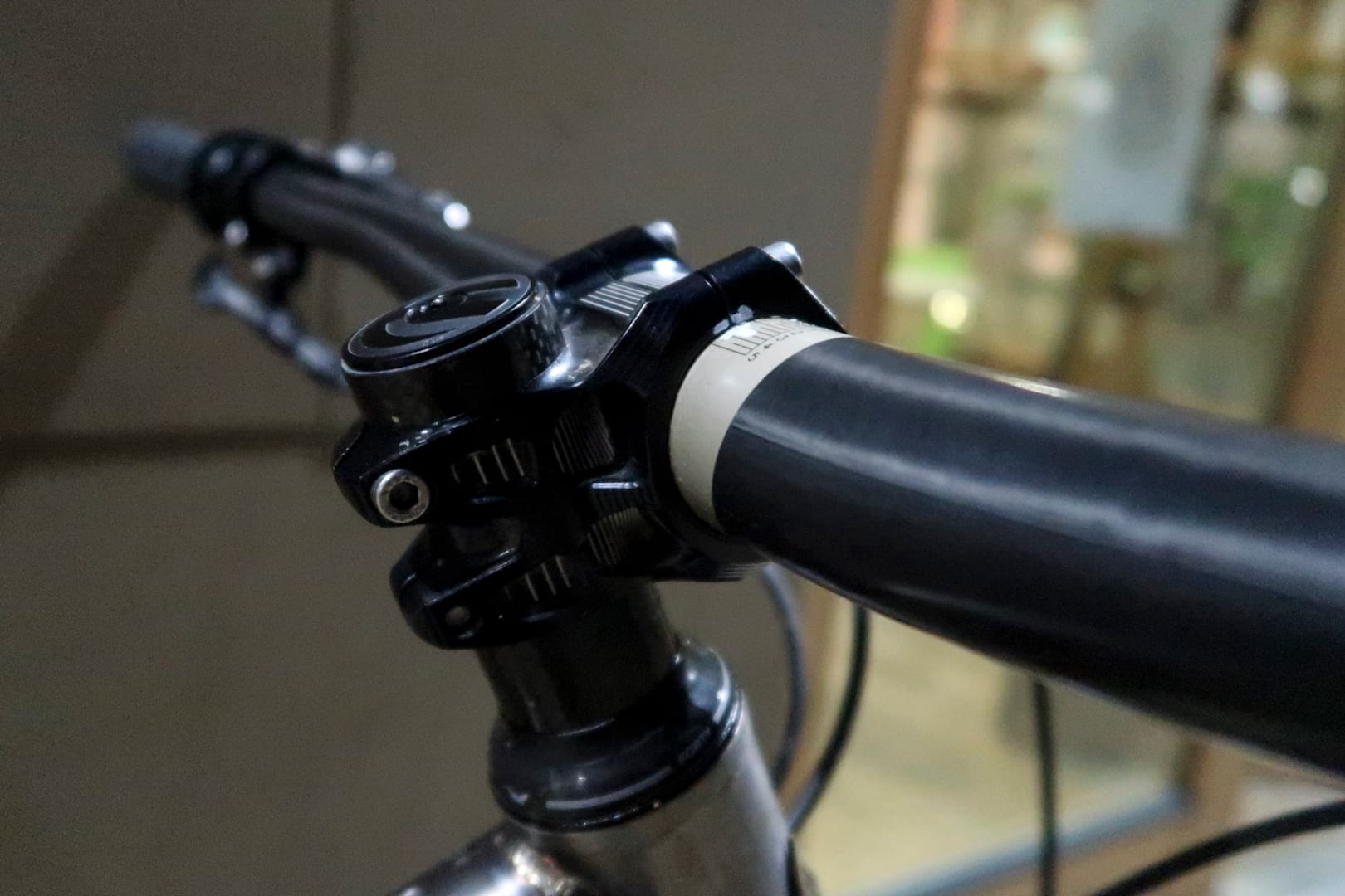 Shimano XTR. I did have Hope brakes on it, but I took them off. I love Hope and the people there, I love the concept and how beautiful they [the products!] are, but for me I prefer the on/off feel of the XTRs. The Hope brakes gave good modulation, but it doesn’t suit my riding style so well.