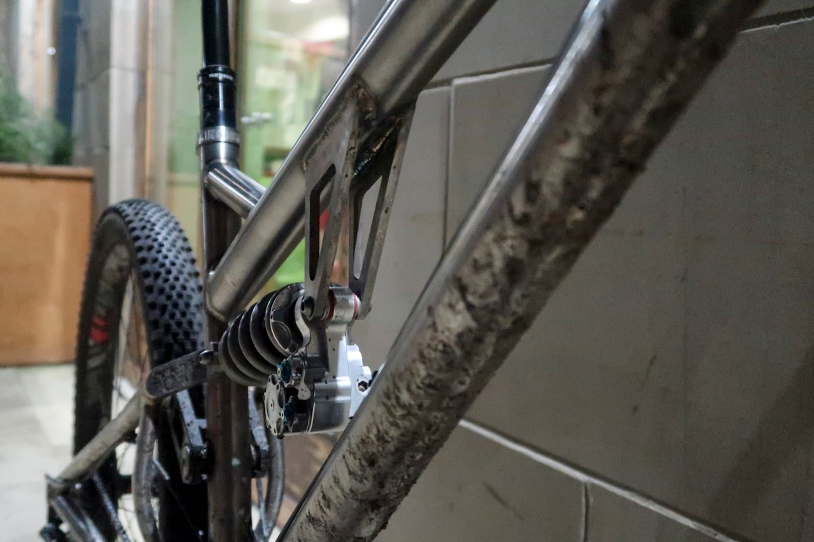 Lovely thing, but that shock mount on the top tube looks quite ‘leverage-y’. There are some big load numbers being focused into that joint, hope they’ve done their sums properly and welded it well, ti is a tricky animal…