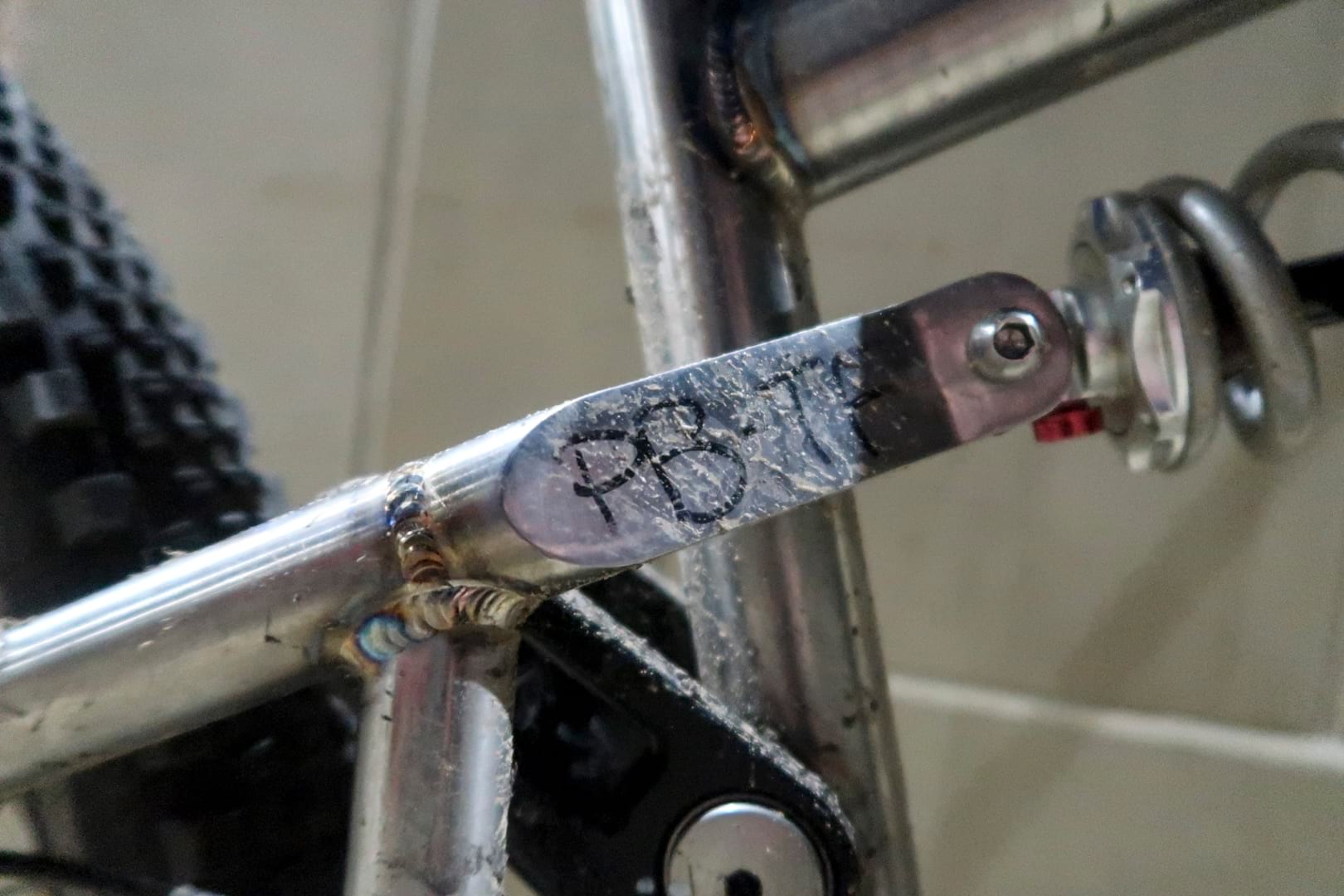 The marker on the chainstay depicts mine and TF’s initials because it was the second back end that I’ve used as we messed about with some experimental geometry. I didn’t scrub off the marker because I think it looks a bit ‘factory’ and makes me feel special and more important than I actually am.