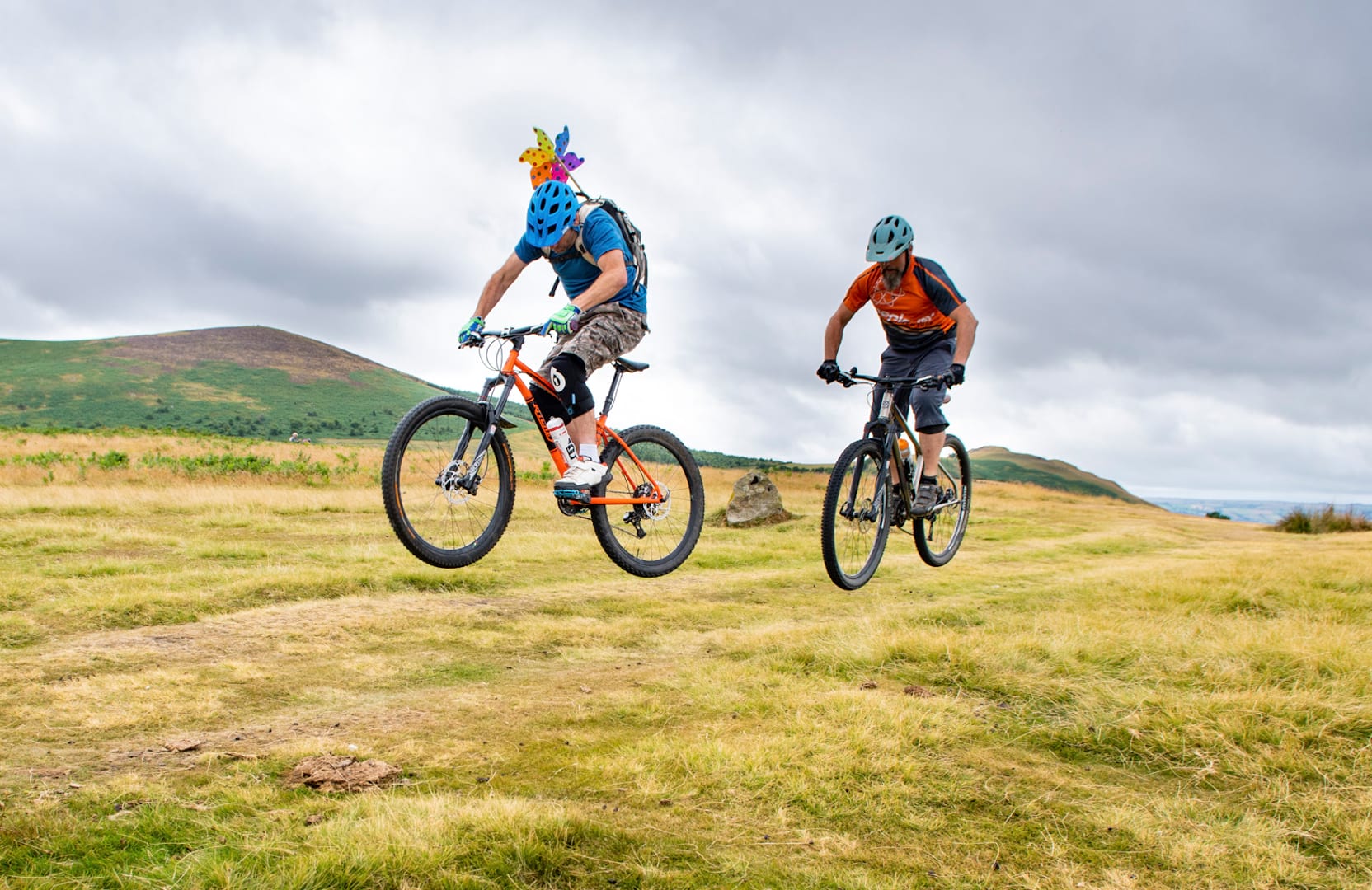 We carried on, following the trail along the ley line across the hill for a mile or two. People who are versed in such things (and who carry wands of birch or copper, natch) seem to state that they can sometimes feel a ‘fizzing’ sensation as they travel along, or cross, or commune with ley lines. We experienced great views to be sure, but I’m afraid that in the moment there were too many other things assaulting our senses to figure out whether we were fizzing because of any magical energy lines or merely the fact that riding bikes is ace. But, somewhat expectedly, energy levels and enthusiasm seemed to diminish when we rode uphill and mysteriously increased again when we rode downhill. Amazing.