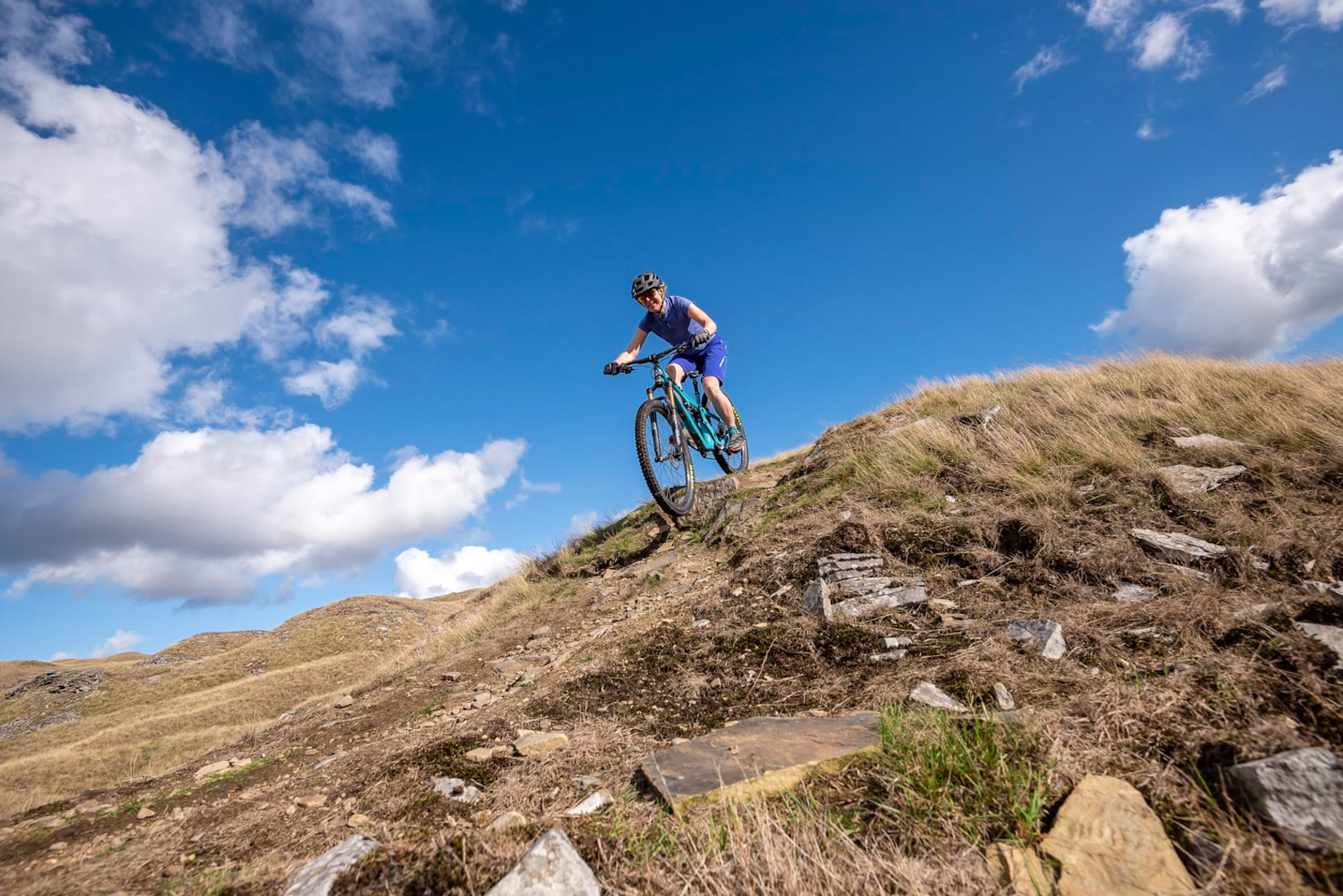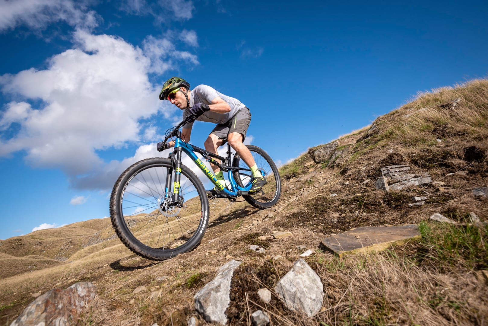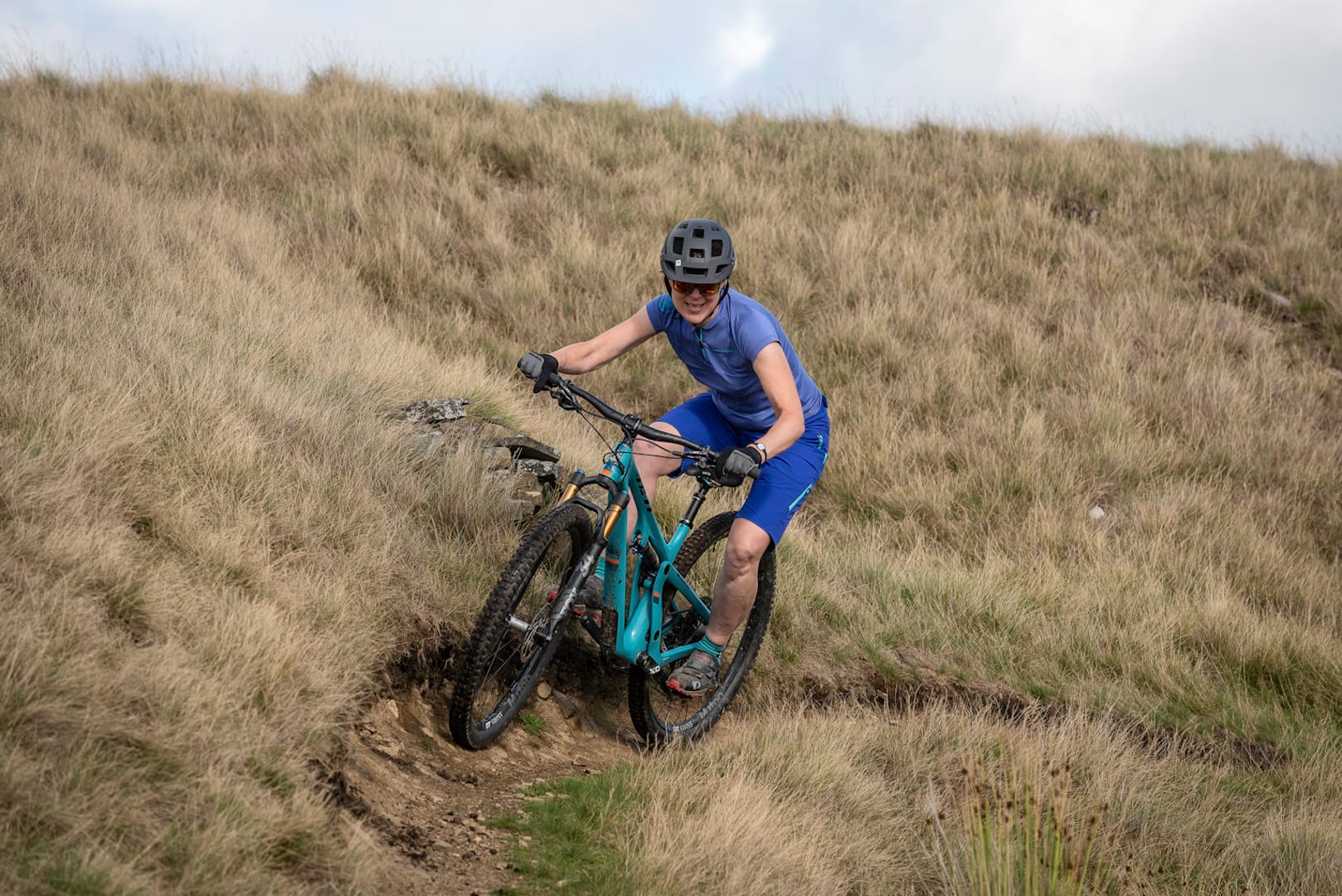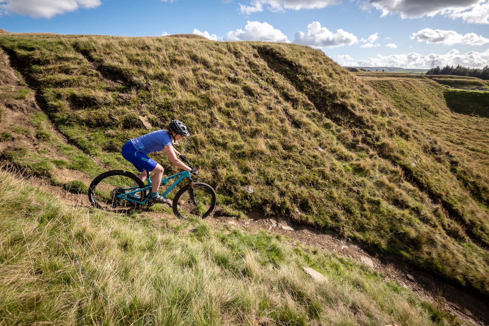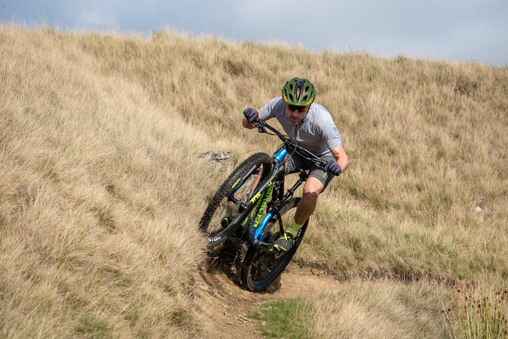 On descents, the Sniper does need showing who’s boss, usually through a combination of assertiveness and confidence. It’s easy to get nudged off line by ruts and obstacles as the light wheels and slim tyres can scrabble for grip, but that weight bias means that you’re always in control from the bars, where it feels that direct steering works better than subtle weight shifts.