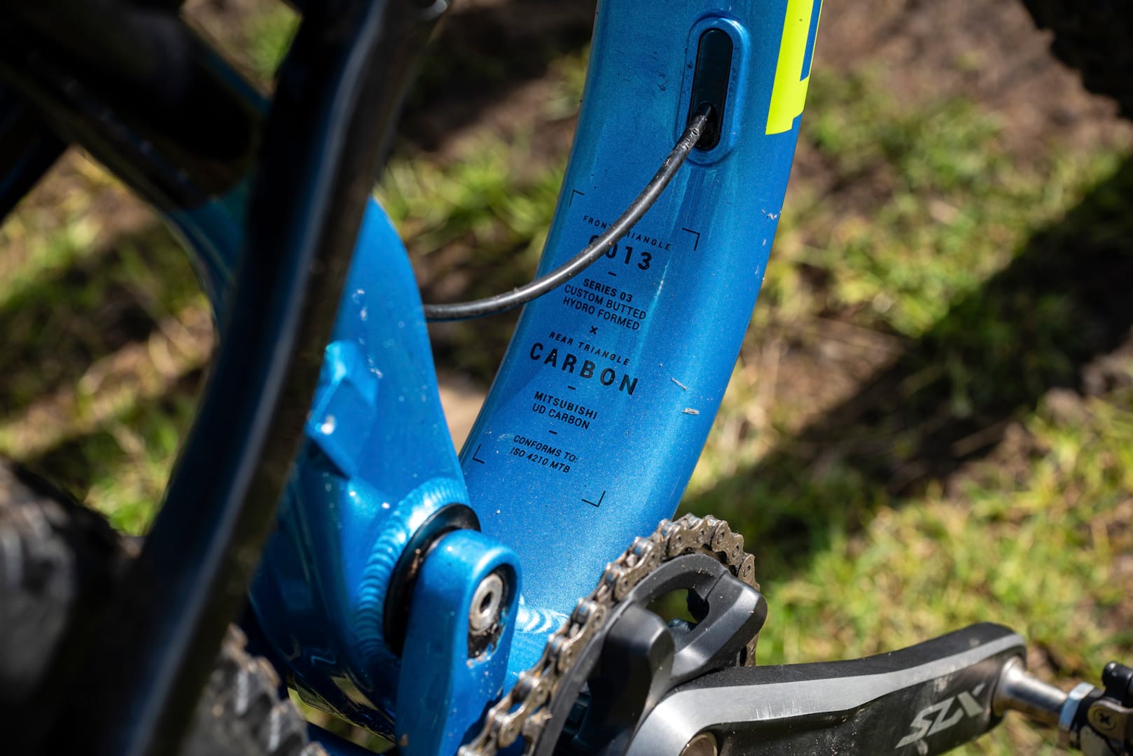 The Switch Infinity system does its job of subtly altering the pivot position efficiently, hidden behind its panel in the back of the seat tube. It’s probably for the best that it’s hidden as it doesn’t actually move that much and you certainly can’t see it move while riding the bike. The panel could have covered the opening a little better as it acts more like an oversized mudguard for the Switch Infinity than a hermetic seal. At least there’s circulation room to allow the mud to dry, but cleaning it is a wheel-out, panel-off job to do properly, which shouldn’t take long, but might require you to remind yourself of the investment you’re trying to protect when it’s cold and dark and a warm fire calls.
