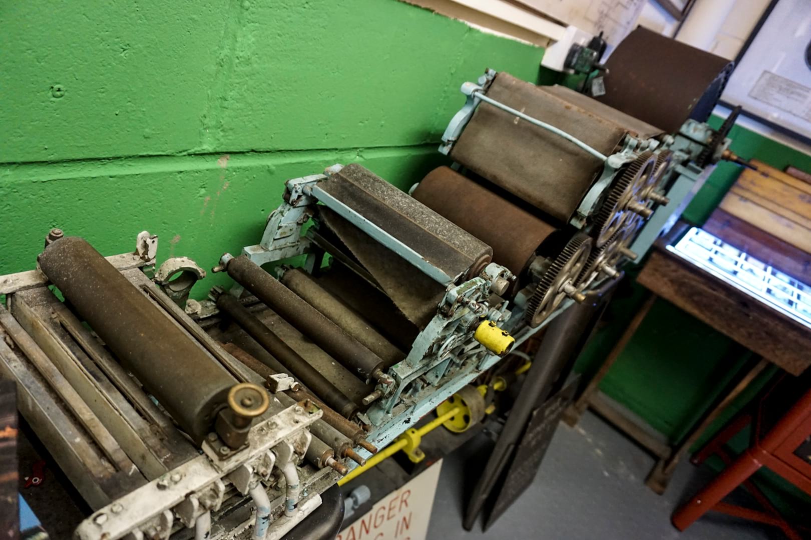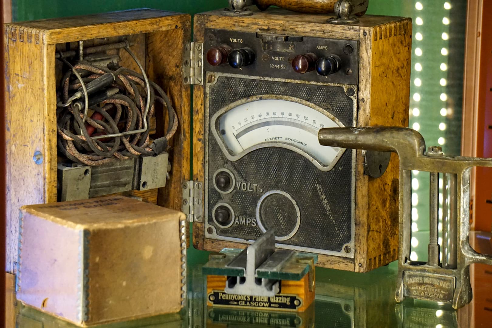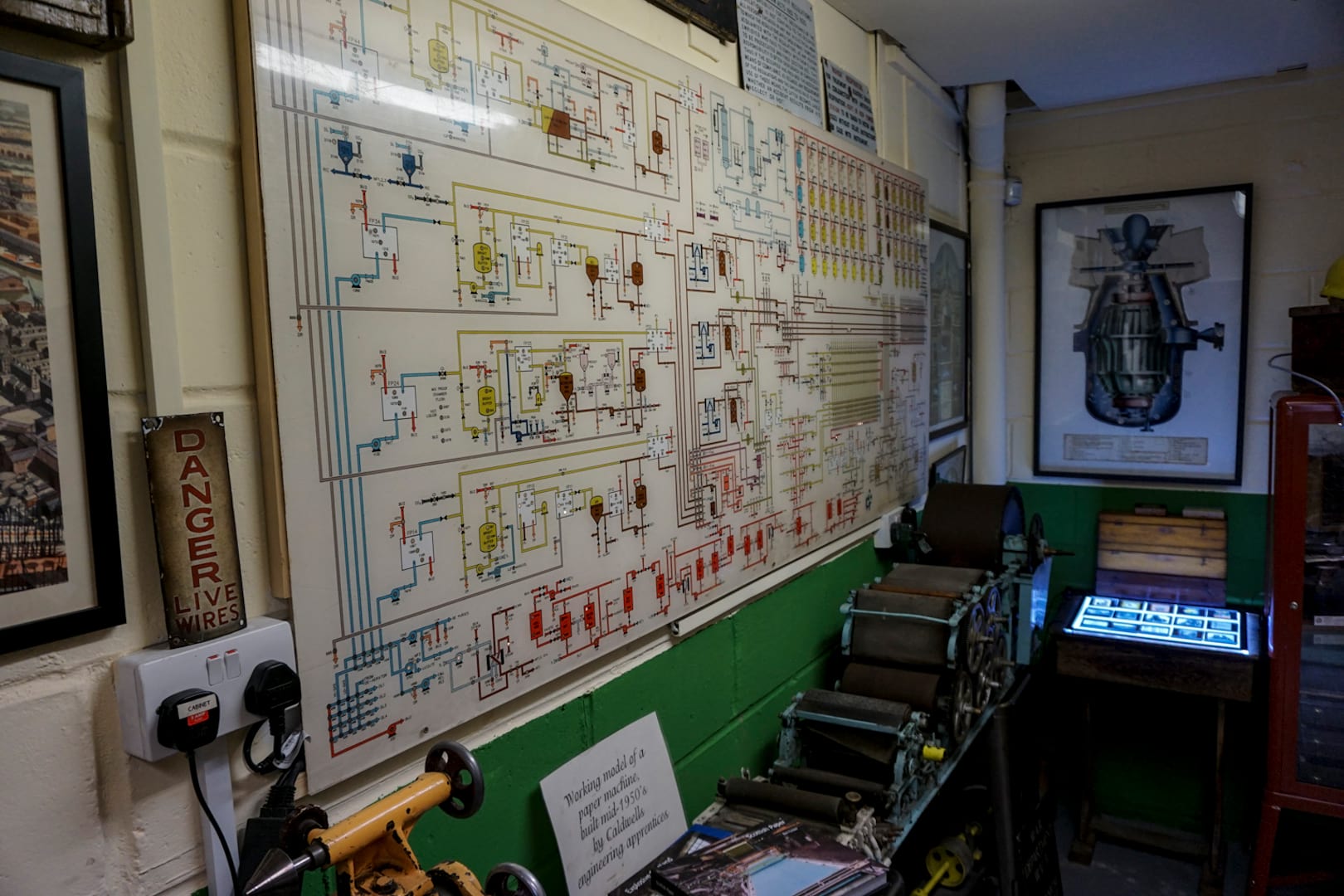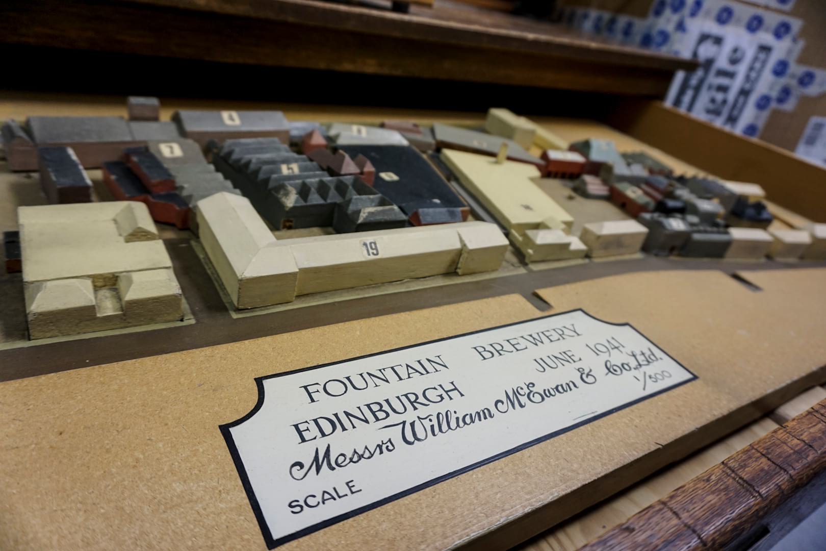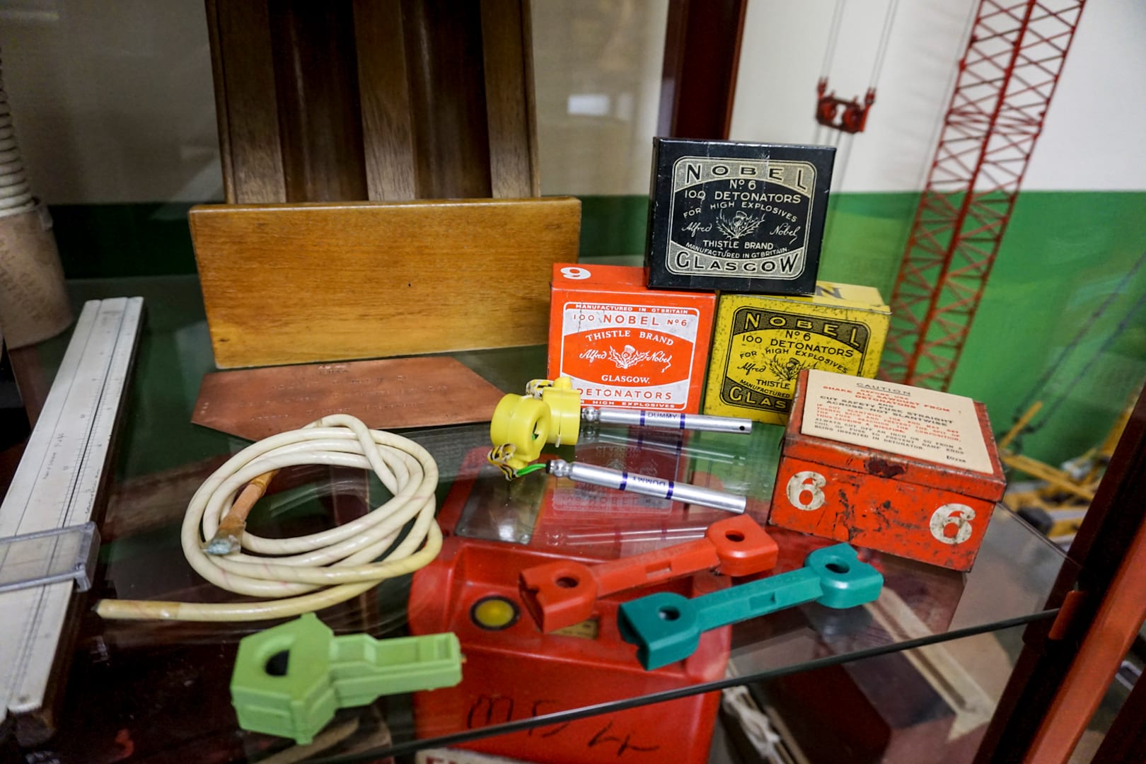 In the opposite corner rests Ben’s collection of memorabilia and artefacts from his urban exploration adventures across Scotland. Liberated from skips as old factories close down or found on eBay, it is a veritable cornucopia of eclectic, steampunk cool. On one wall, a fully operational electronic board from the old Fountainbridge brewery in Edinburgh. “Why do you have that?” I ask. “To go with the scale model of the brewery I have here!” Ben replies with a grin as he pulls open a drawer for the big reveal. Opposite, a fully operational scale model of an opencast mine sits while against another wall is a small, but perfectly formed, working paper press model. I feel like a kid in a sweetshop. Add in the likes of a Geiger counter, Nobel explosive boxes and memorabilia from the Empire Exhibition and it is hard not to want to spend time poring over these little slices of industrial history. Every piece comes with a story and Ben is generous with his time.
