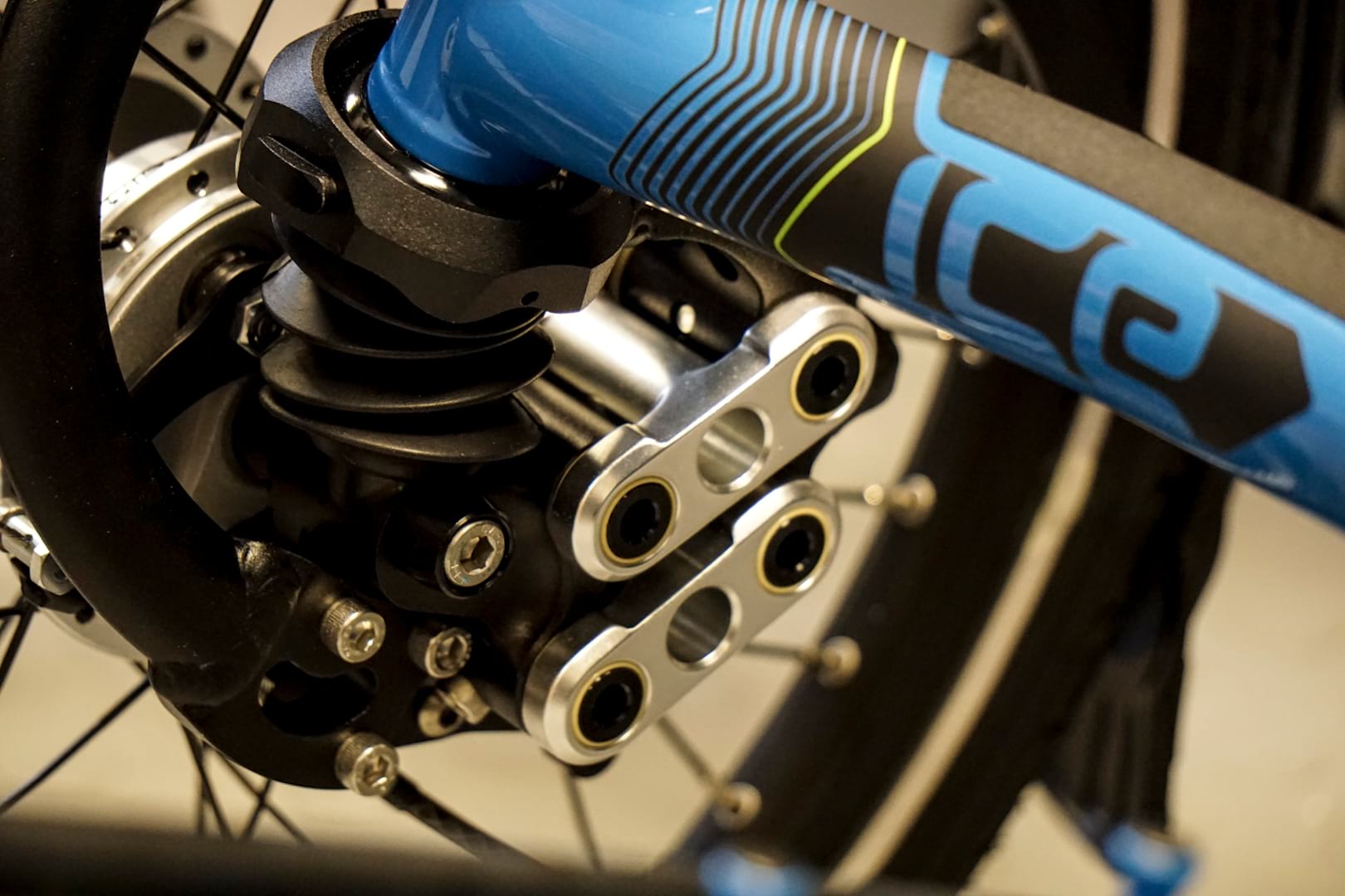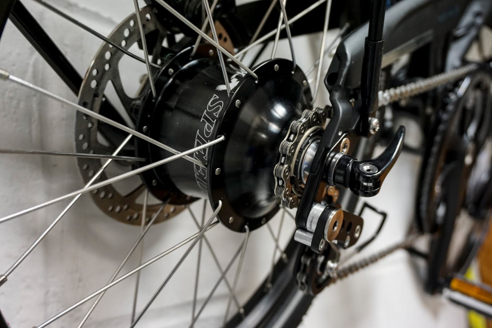 “I started welding (well, brazing mostly) when I was at Harper Cycles – there was a night class on at North Glasgow College, taught by an ex-shipyard welder called Willy Bell. That got me into the idea that if you wanted something, you could just stick bits of metal together until you had it – I started off by building a recumbent frame. Most of the rest of the inventions come about by not saying no to people – someone asked me if I could get a Rohloff hub into a Brompton, and I thought it’d be an interesting thing to try, and now that’s a reasonably big part of my business.”