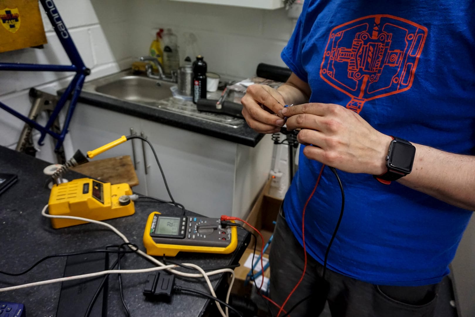 I first came across Ben and his Glasgow-based shop Kinetics many moons ago when he started plying his somewhat-removed-from-mainstream bikes and accessories in a small row of shops just down the road from my parents’ house. Aside from his infectious enthusiasm, I was struck by just how much of a practical problem-solver he is for all things mechanical and electrical and by his love of engineering and industry. While some of us lusted over the latest Deore XT-sporting, Tange Prestige ultralight race frame from some obscure US manufacturer, Ben was already into gearbox hubs, dynamo lights and recumbents coming out of Germany. While most bike shops would be offering fairly standard servicing and repairs, Ben was getting acquainted with a welding torch and soldering iron. Not for him the standard puncture repair and gear adjustment. Rather, if you had a problem that nobody else could solve, like The A Team, Ben would be the man to call. Fitting discs to a Brompton? Sure, no problem. Want to cut your frame in half and fit S&S steel couplings for pain-free flights? He could do that too. Long before drones were a thing, Ben was already building and piloting them himself. You get the picture.