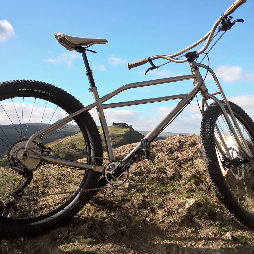 This got me thinking about geometry, and whether a rigid bike could be designed as a legit trail bike with a setup that could limit the hammering. And so I designed a bike, and it worked a treat – slacker head angle than was the norm at the time, taller front end, mildly swept bars so you ride with the front unweighted so it skips along the trail. The one overwhelming advantage of a good rigid bike is that the geometry is set in stone, it never deviates through suspension sag, and once you’re dialled to the bike the feeling is like no other, you know exactly how the bike will react, its agility is through the roof, it’s up to the rider to learn the skills and start hammering the trails. The response I get from people who try my bikes is always the same: ‘I had no idea this would be so much fun’.