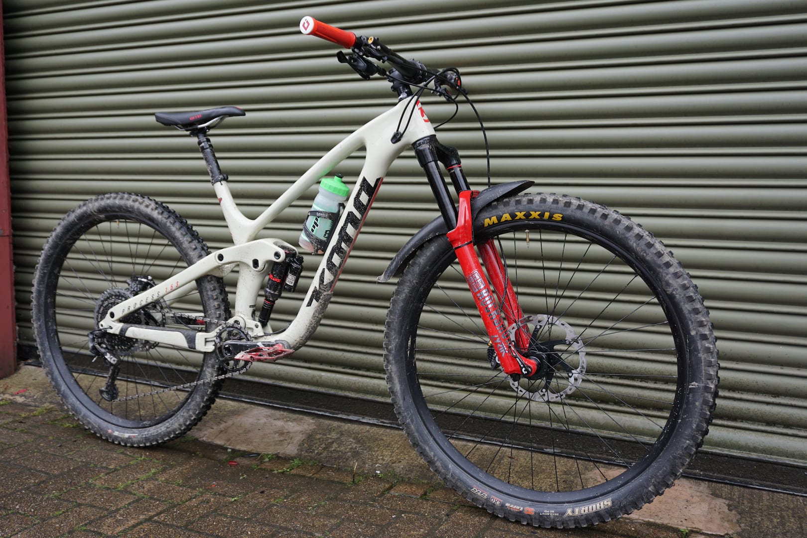 Kona was one of the first major brands to up their geometry game, and although a lot of brands are now on the ‘bigger, longer, slacker’ bandwagon, the Process geometry is still pretty progressive. Scott’s bike is a large frame with a reach of 475mm, a ‘slack enough’ 66° degree head angle and a 75.8° seat angle for helping you winch up hills. Other numbers of note are a nice short 450mm seat tube length for maximum dropper action and mega short, 425mm, chainstays for getting your manual on.