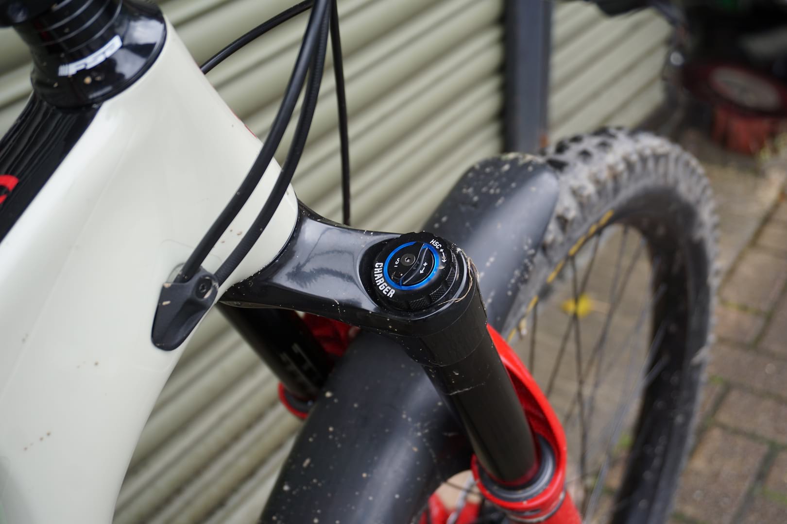 If you bought a Process 153 CR/DL 29 from your local Kona dealer you would get a fork with black lowers, but Scott wanted something a little different and swapped to these ‘factory’ red versions.