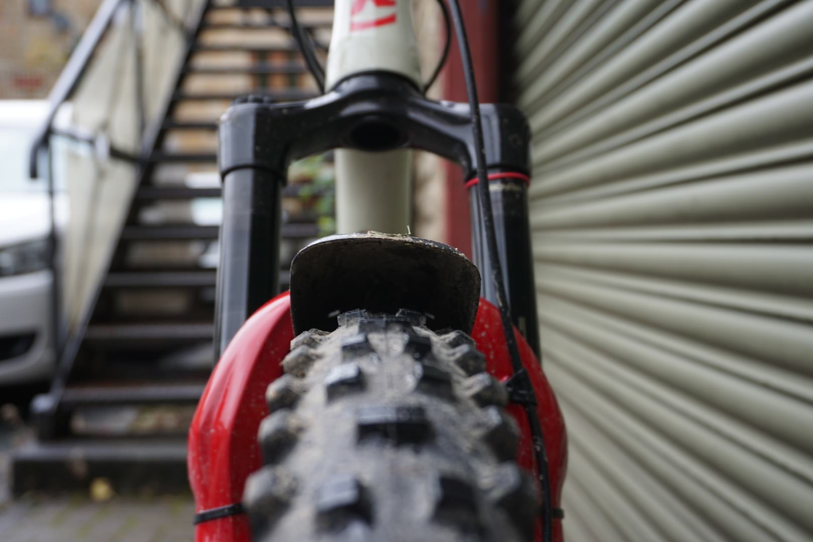 Keeping things going in the right direction is a Maxxis Shorty 29 x 2.5 to give confidence on steep natural trails and plenty of bite in the autumn slop, with a Rock Guardz front guard for crap collecting duties.