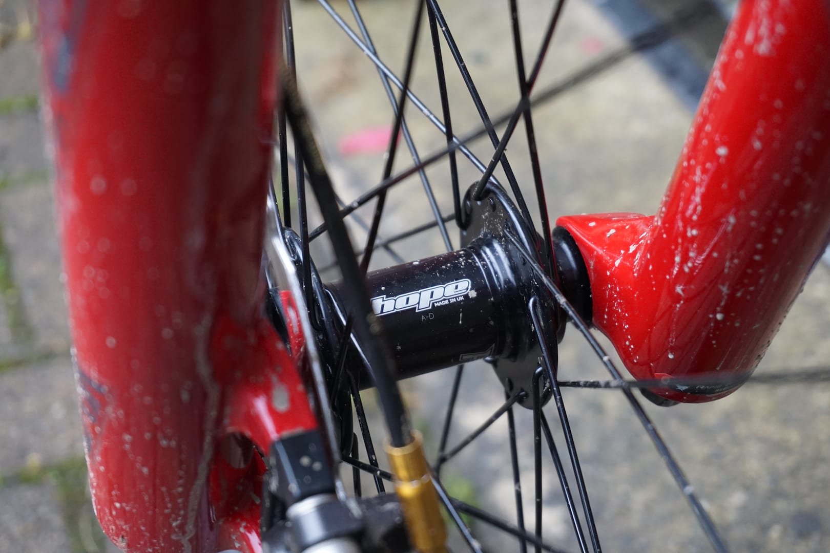 Wheels have also been changed from stock and are a set of custom Hope Pro 4 hubs laced to stealth Race Face Arc 30 rims with a 30mm internal width.