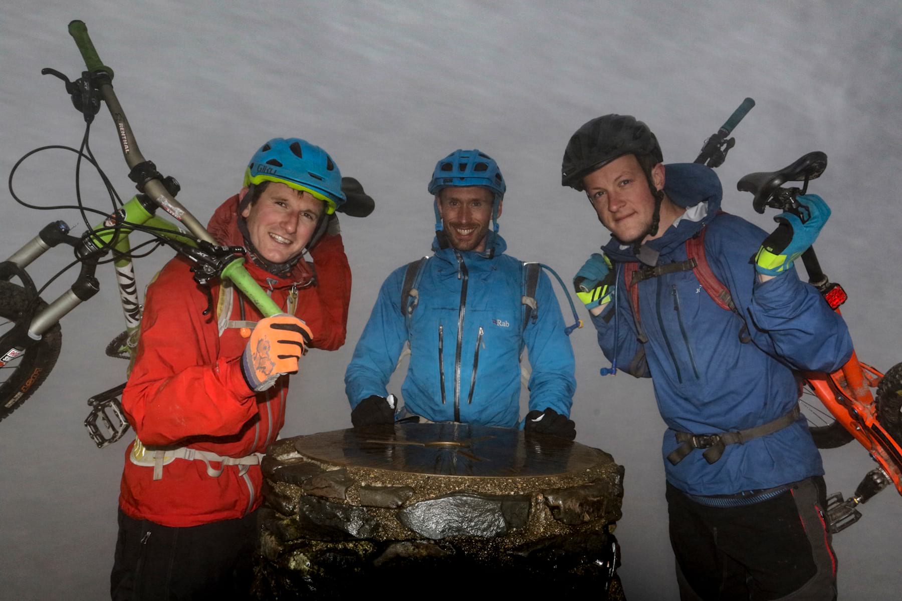Thanks to Bob, the mood lightens and after an hour or two of drenched buffeting, we’re back at the ridge. Richie shoulders his bike, which worries Steve and me as we’re convinced he’s about to be blown to his death, but he survives and we tag the summit cairn for the second time. Weather-beaten and worryingly cold, we decide to get down ASAP and stagger off towards the Llanberis track and the promise of a cup of tea.