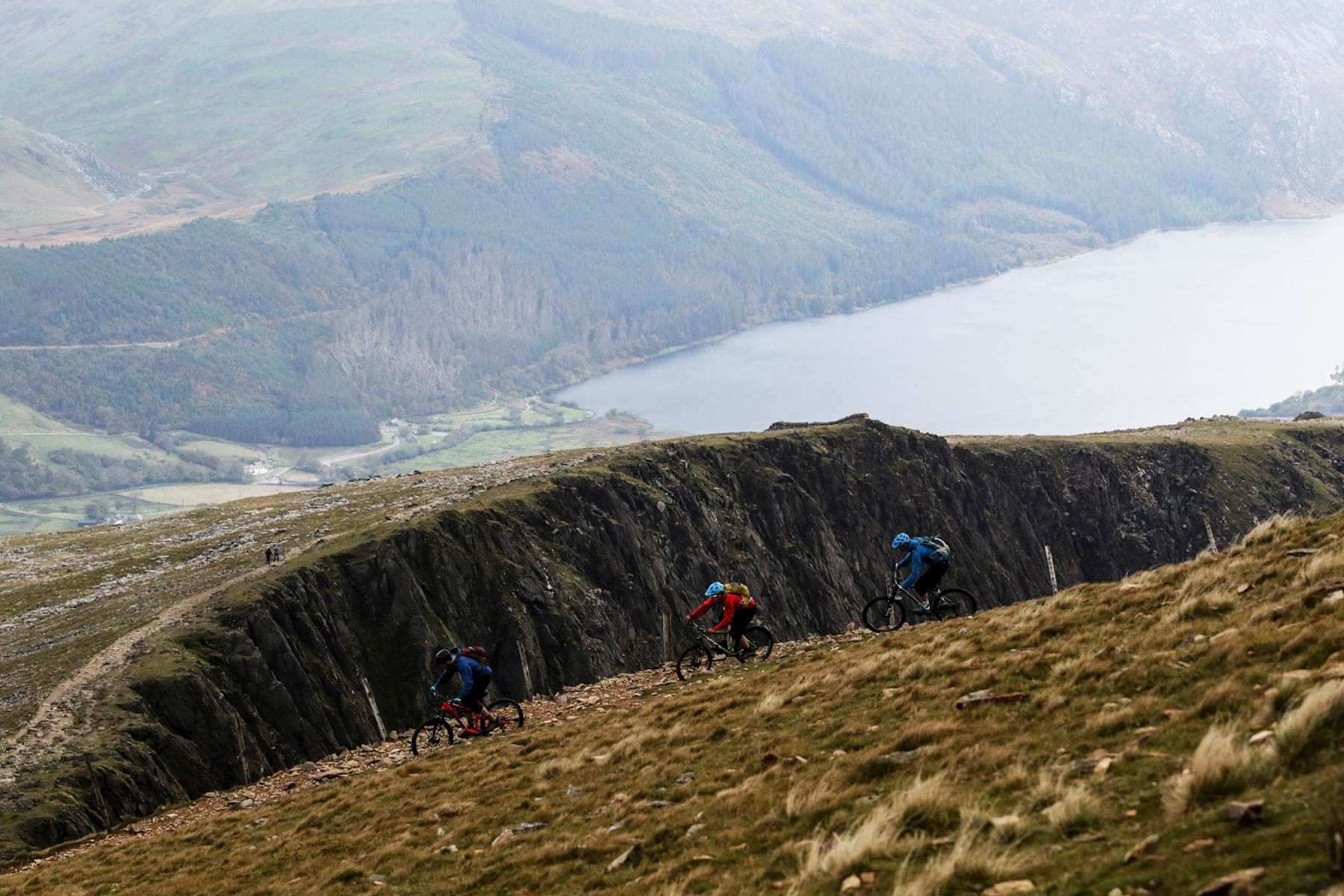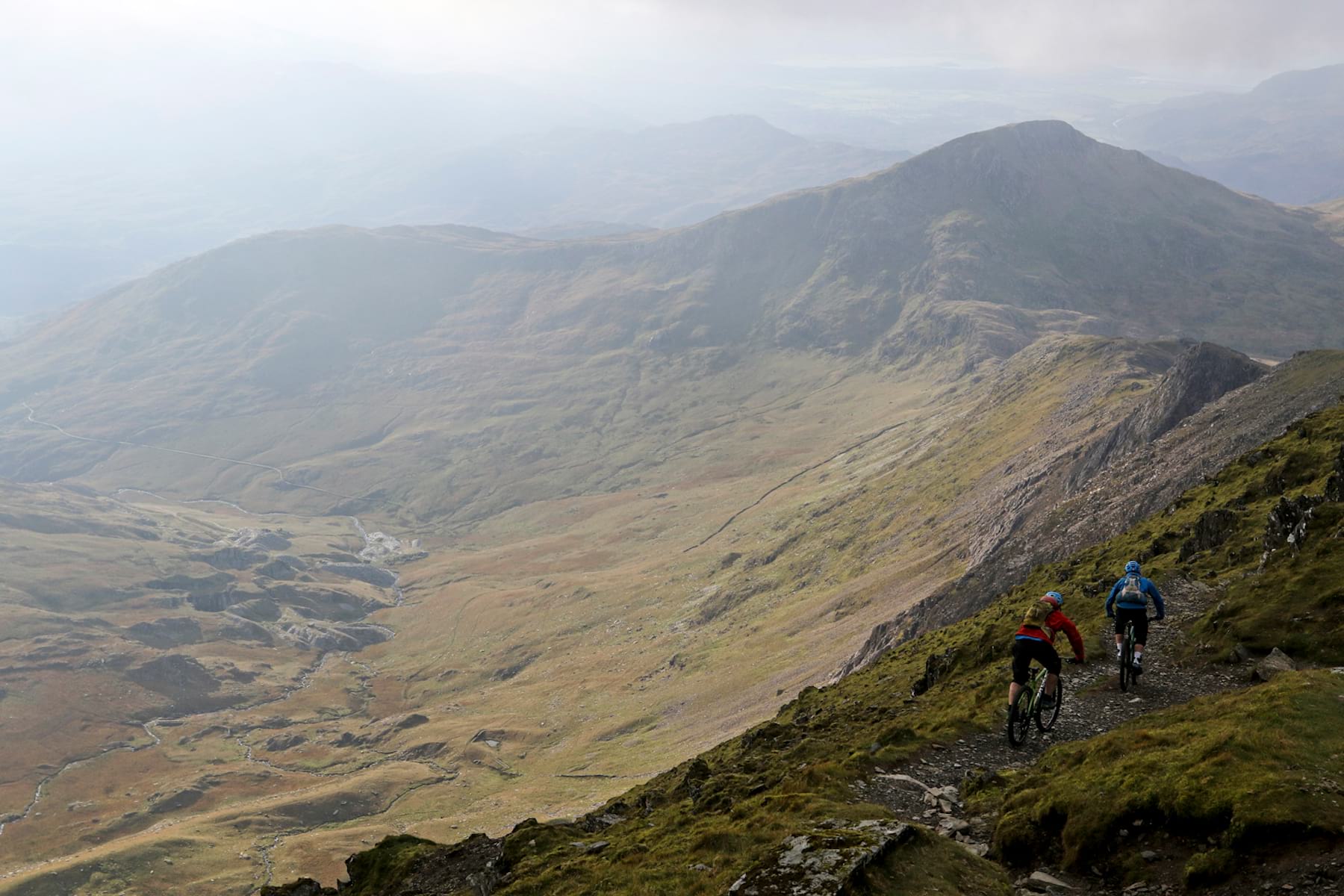 Snowdon has three bridleways to its summit. The most obvious is the wide and technically straightforward Llanberis track. Often dismissed as boring, that does it a huge disservice. It’s fast and fun and there’s loads of room to play around. Then there’s the Ranger – technical singletrack, loads of hairpins and incredible views. It’s the one everyone descends and for good reason. Lastly, there’s the Rhyd Ddu (Rid Doo?), described as ‘unrideable’, ‘death on a stick’ and ‘a six-inch wide track where you’re clinging to a rock with one hand and dangling your bike above a 200-foot drop with the other’. Intriguing, no?