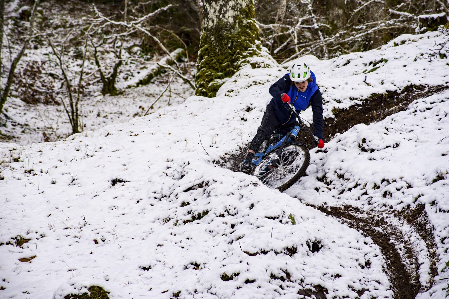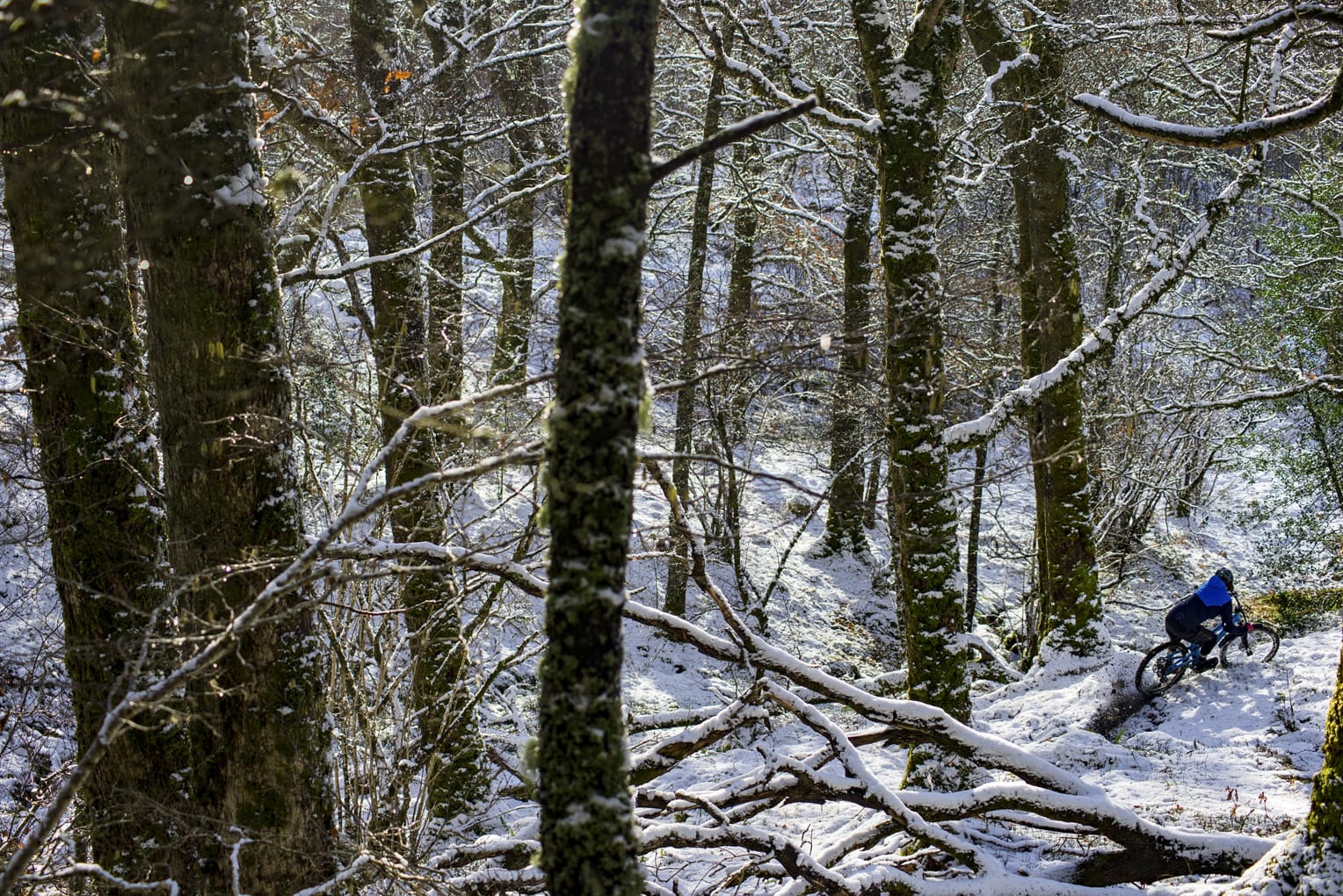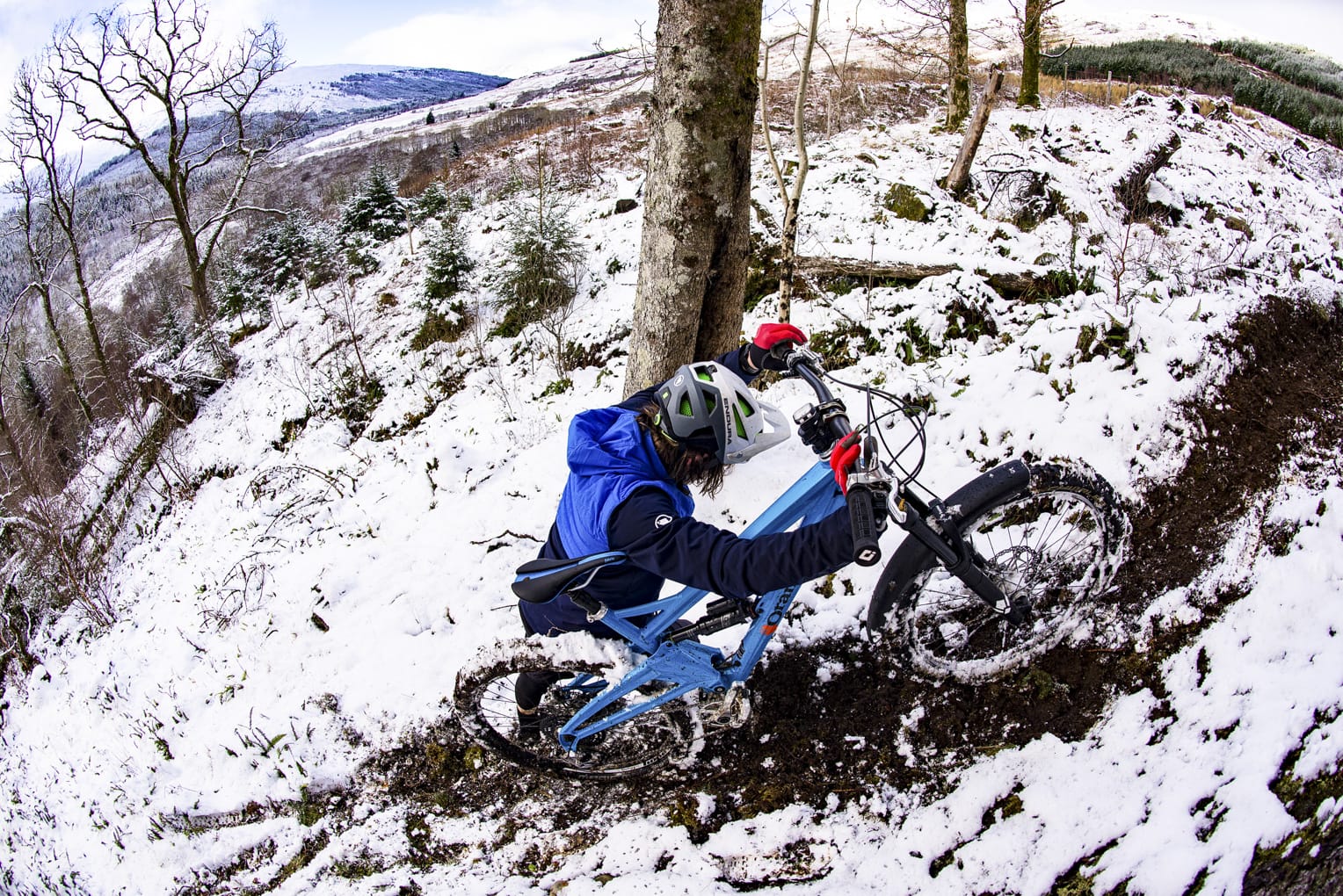 From thereon down I feel like I’m trying to keep pace with a fast four-wheel drive car in an absolute banger with bald tyres on a wet B-road. As fast he is up the hills, Joe has an annoying habit of being ridiculously fast through trails that are awkward enough without two inches of snow. Ignore the howl of cold, wet brakes and just watch the man quietly take the hill to pieces.