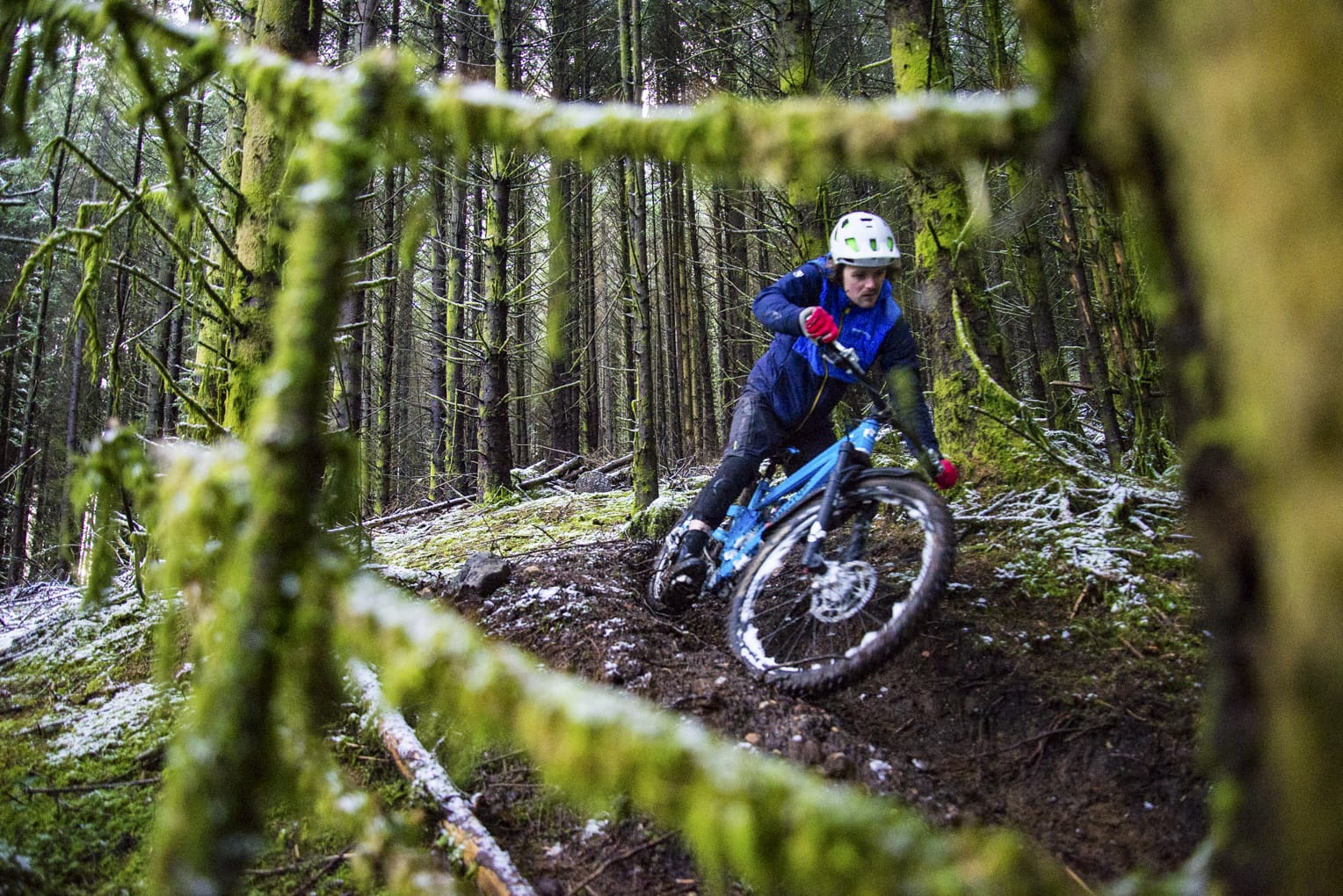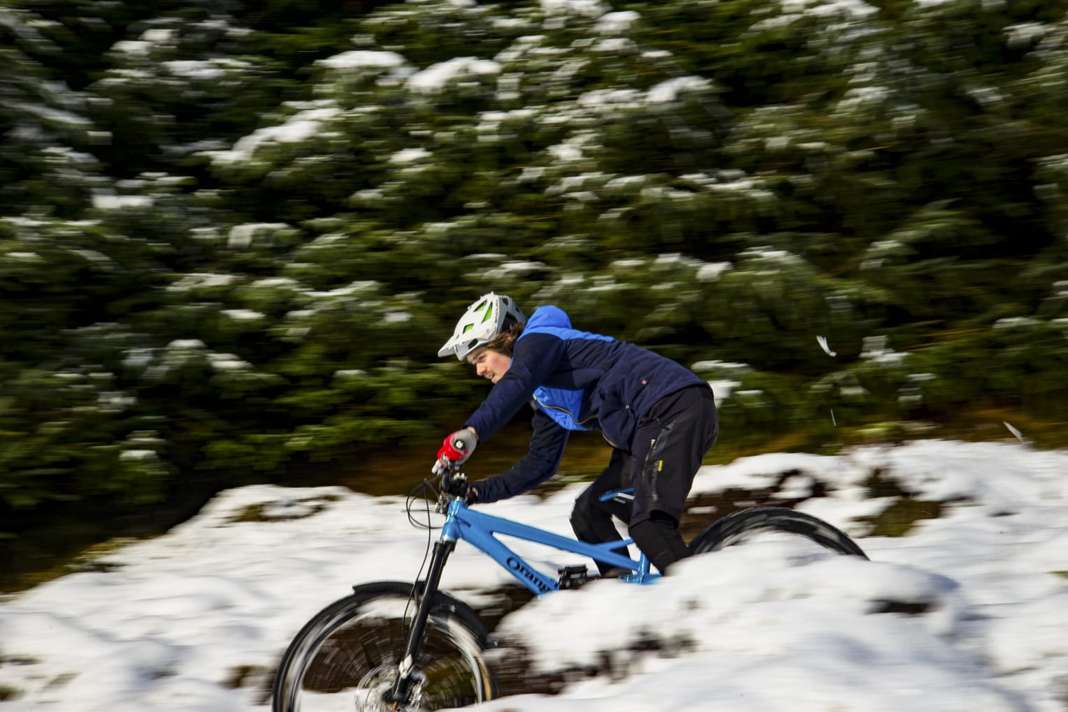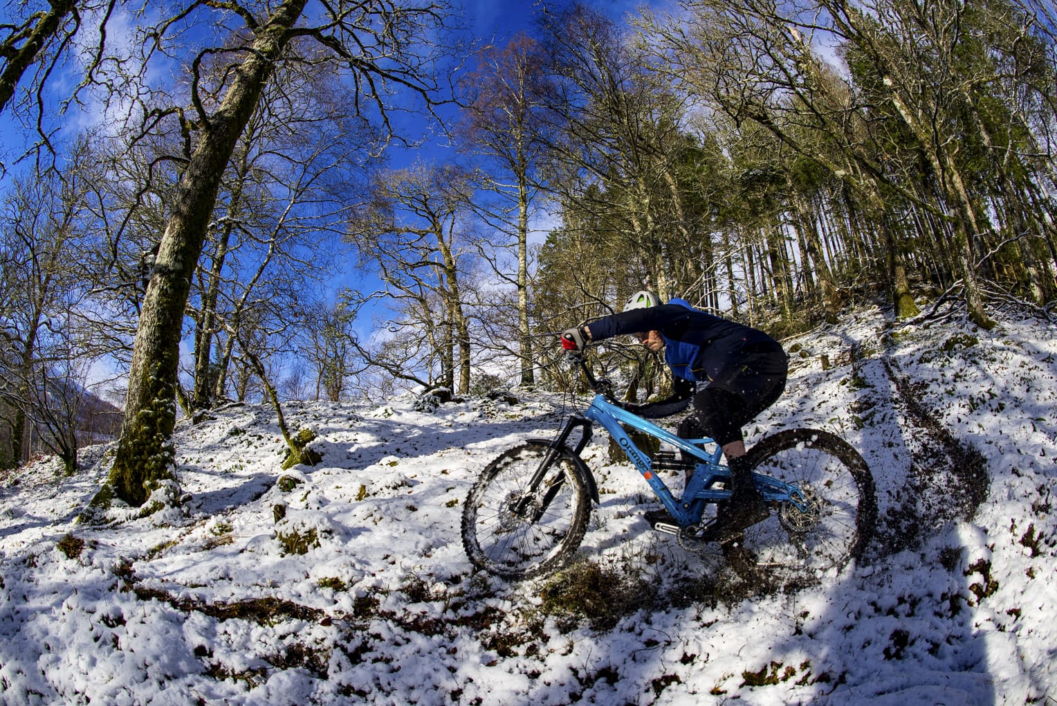From thereon down I feel like I’m trying to keep pace with a fast four-wheel drive car in an absolute banger with bald tyres on a wet B-road. As fast he is up the hills, Joe has an annoying habit of being ridiculously fast through trails that are awkward enough without two inches of snow. Ignore the howl of cold, wet brakes and just watch the man quietly take the hill to pieces.