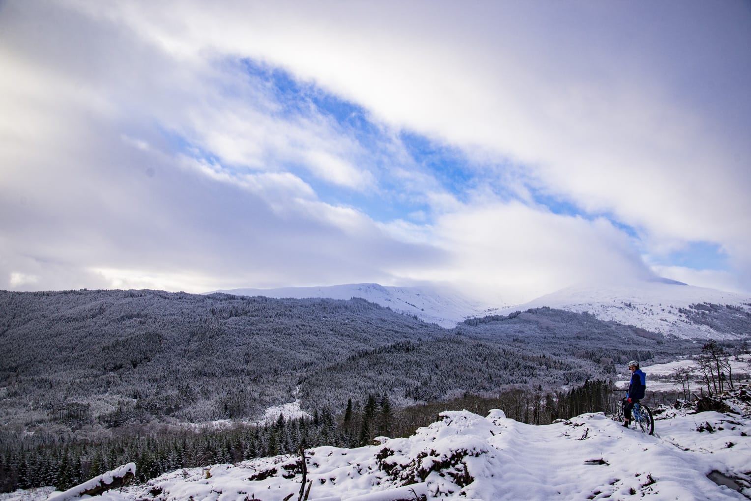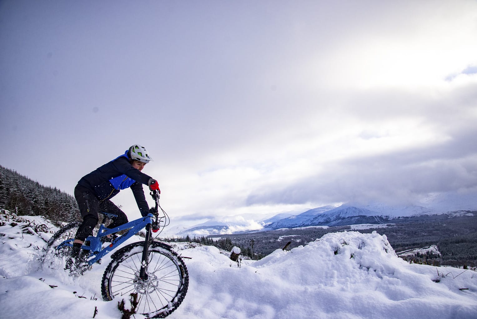 This particular riding spot has risen phoenix-like from the flames of a clear-fell and is now back up and running. With a full winter coat, the vast stump field at the east end of the glen looks pretty bleak. That said, we’re very much in Joe Barnes territory. Much of the singletrack here has been crafted by his hand, or at least had his input somewhere along the line. It’s steep, narrow and rutted, and has corners that only work when attacked before it spits you out on a fire road conveniently located for another lap of the same. This is what riding in Fort William is all about. Bust out the laps until you almost throw up or feel a crash is imminent.