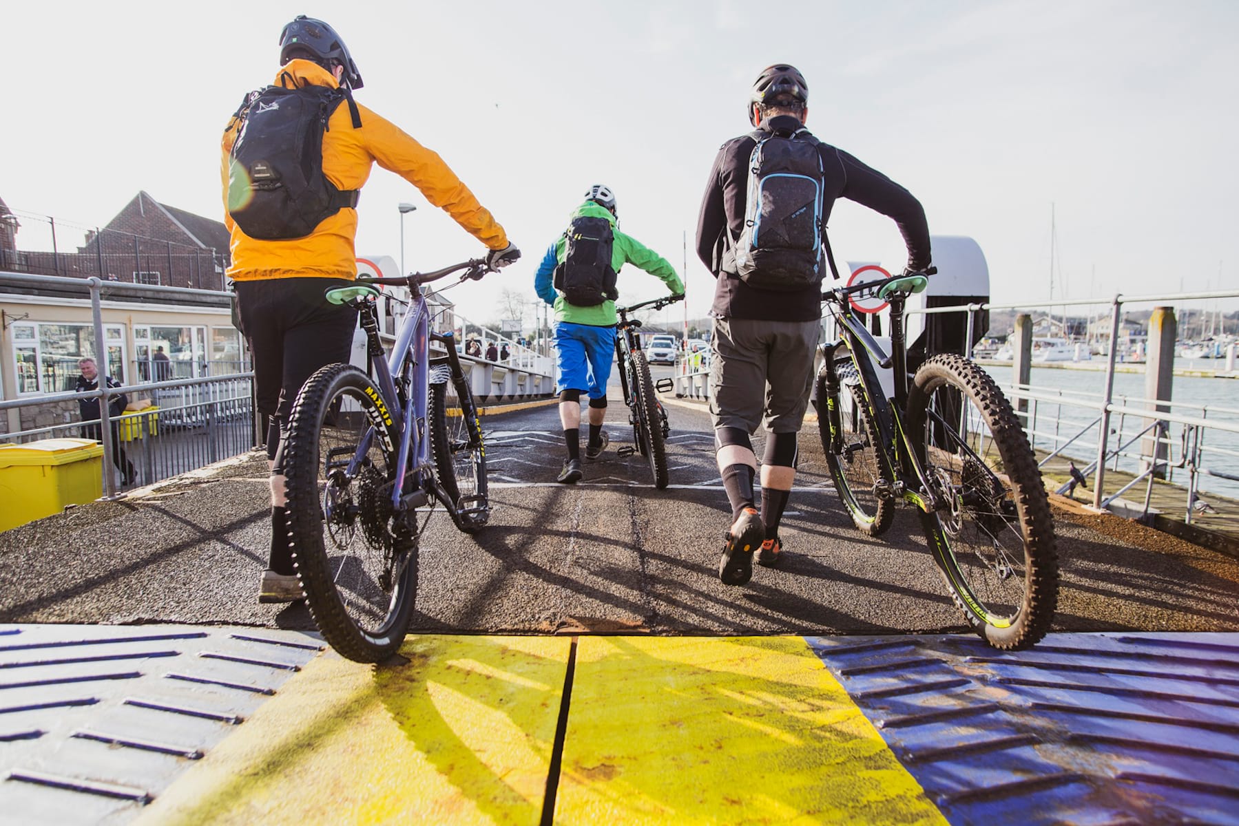 After a week of dry weather, I knew they wouldn’t refuse the promise of a boat ride over to the Isle of Wight and a reason to reminisce over last summer’s escapades there over a pint. Mountain bikes are dug out from the backs of garages, loaded into the van, and we head for Lymington.