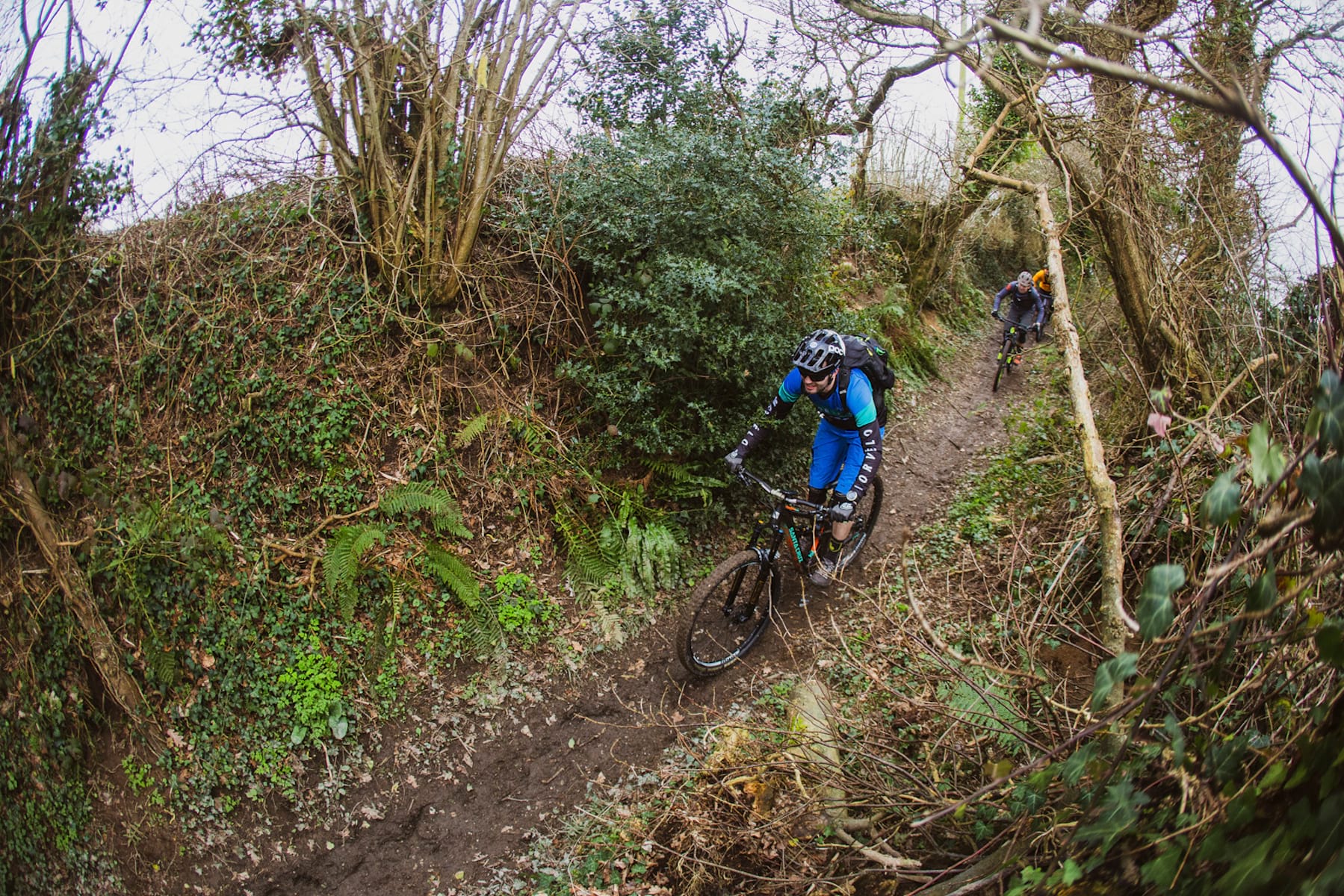 Forestry work in Brighstone Forest has churned up the trail, making hard work of what is normally a steady climb. The relentless combination of the treacly ground, deep-treaded tyre tracks and the abundance of debris from the tree felling means that it’s a hellish haul back to the top of the ridge. Brighstone Forest is littered with unsanctioned rooty trails among the trees if you know where to look, but we were on a deadline to beat the setting sun back to the ferry with only the most sensible of us packing lights (ahem). So we surge onwards, saving these for the next escapade in the summer months.