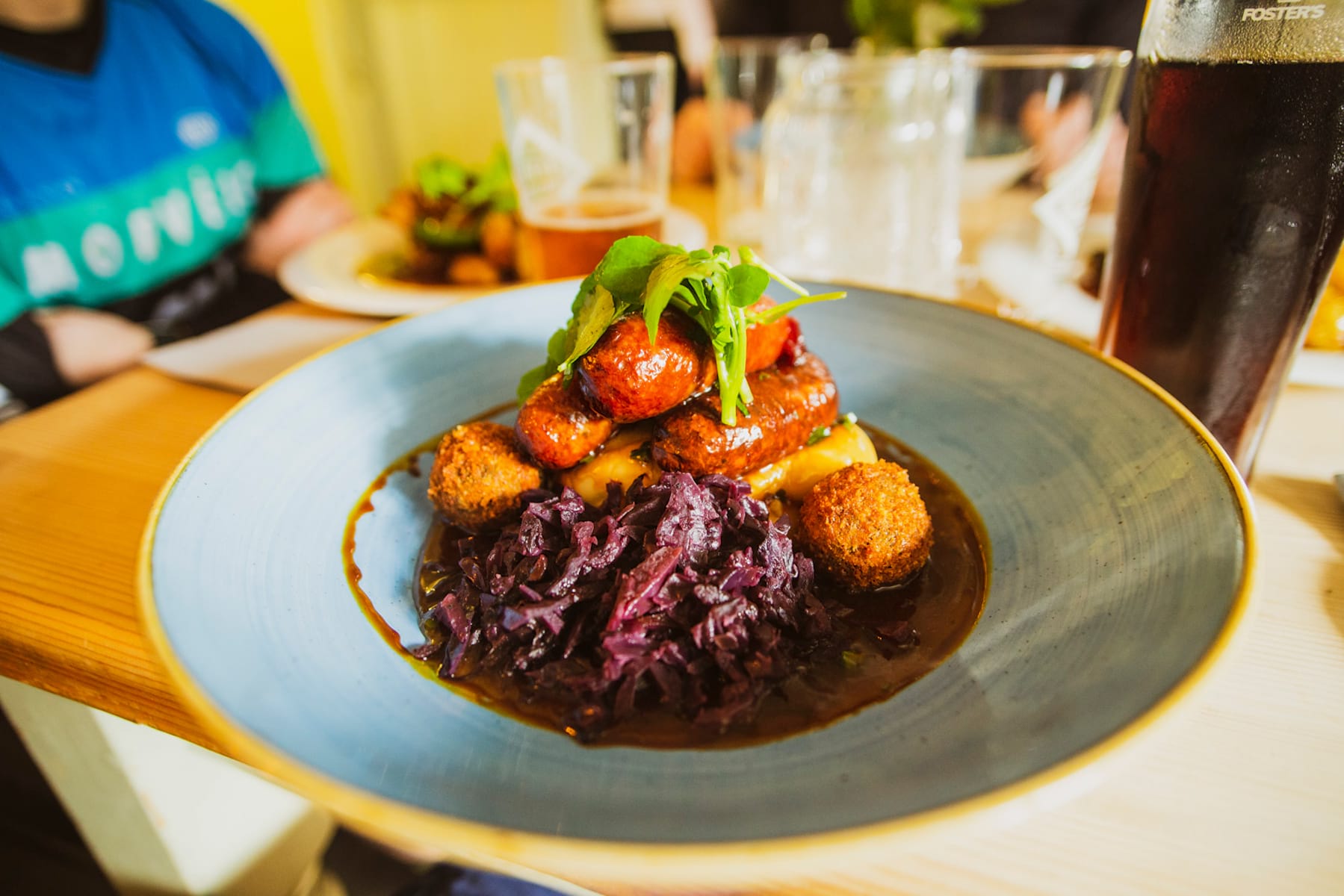 With the trails closed, instead we charge on towards the promise of food and beer.