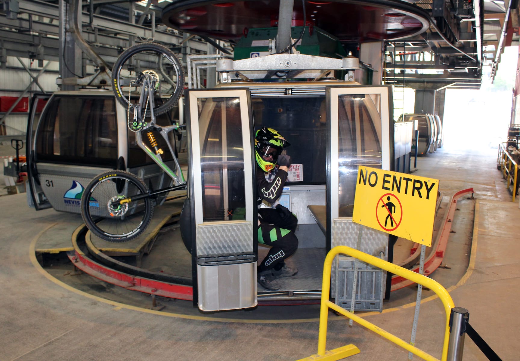 Sprinting around to get Binnsy sorted means I haven’t spent any time on my own bike and as we’re about to get in the Gondola it becomes apparent that the back wheel’s trashed; badly buckled with a crack in the rim and a number of loose spokes. It’s too late to change it now, but it’s only seeding so all I have to do is roll out of the start gate and I’m in the race. Fortunately though, or unfortunately for the rider concerned, seeding is delayed before it’s even started due to a red flag on the motorway, so I stay in the gondola and head straight back to the van. The wheel change doesn’t go well and whilst I’m trying to switch everything over the call is made that seeding is cancelled and it’s just going to be one race run. I need to get back up to the start. Binnsy’s still up there and I’m stressing. After switching end caps the wheel now fits in the dropouts but the gears are all over the place. Step forward Hopetech’s Dan Bladon who sorts it all out for me. When you think of the word “hero” you don’t generally think of a young lad from Hedben Bridge but heroism comes in many forms. Cheers Dan, you’re a legend!