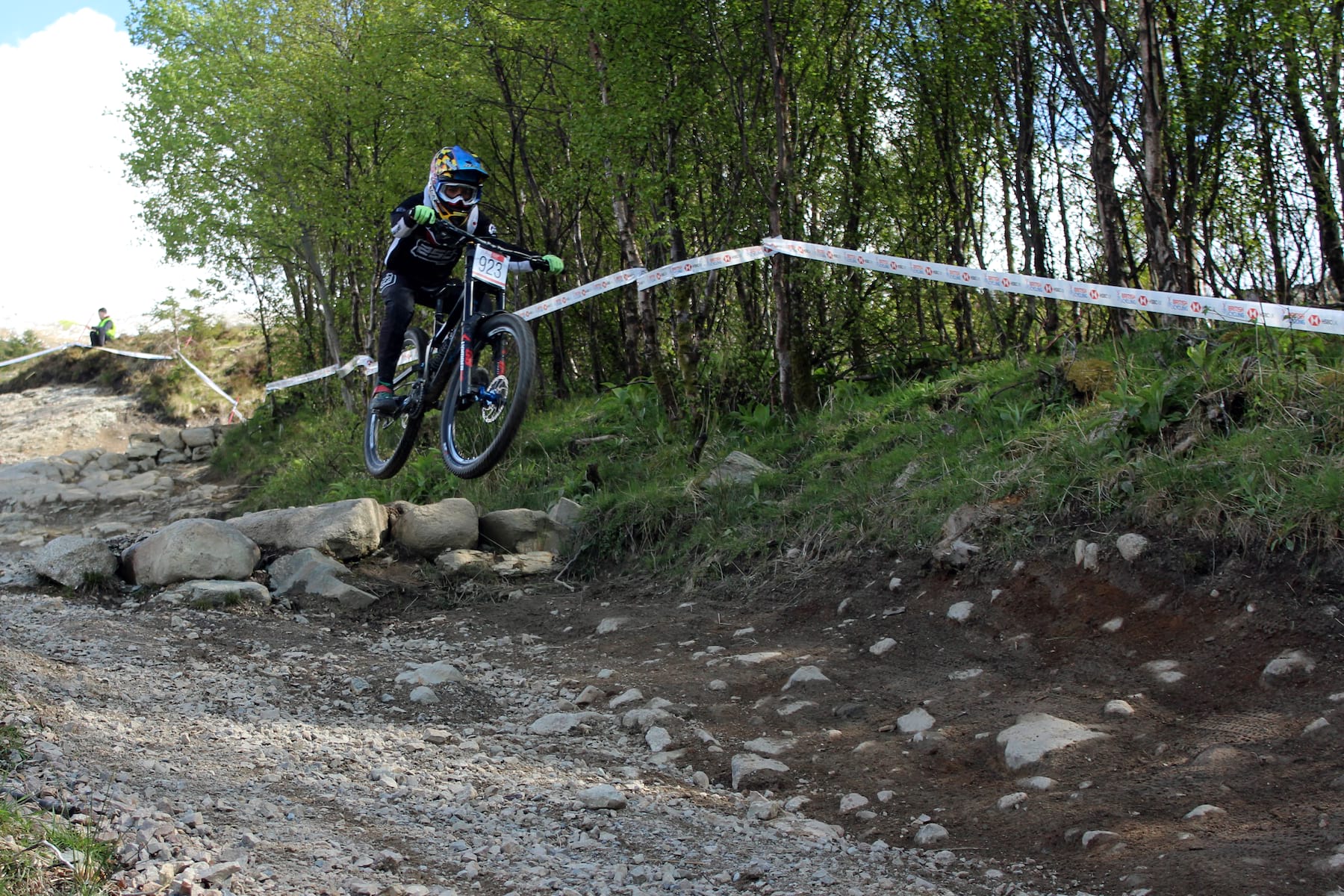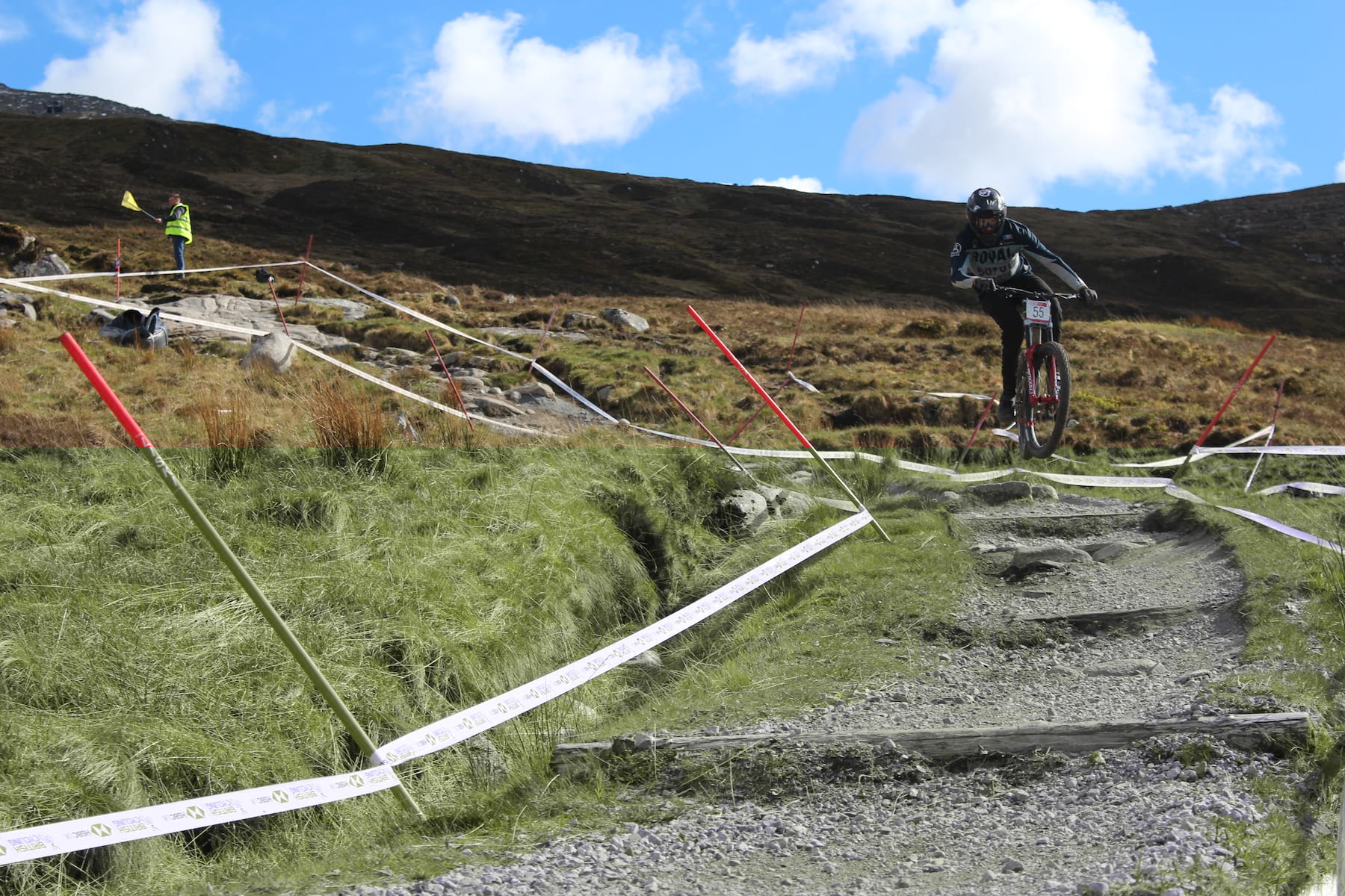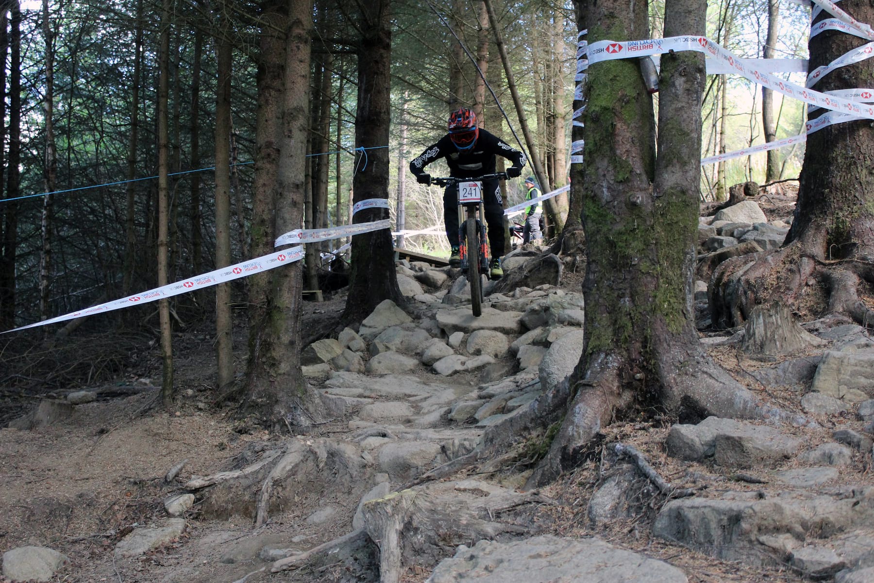 In the end it wasn’t the stomach bug, the crash out of the start gate or the stress of the bust wheel that got me; it was a mix of fear and fatigue. As I hurtled towards the Hazard Hoofer, arms pumped up like Popeye on my first full run of the weekend I had to make the call “are you doing it or not? If you are then it’s no brakes all the way to the end. If you’re not, then there’s no point doing any of it”. In the split second I had to decide I chose the latter. I’m annoyed with myself now but at the time I didn’t think my sparrow’s wings had the strength to pull up and the consequences of not making it this week were just too great, so I cruised home with a 7:03 which actually put me in 15th place. Apologies to the rider behind me who was annoyed that I’d held them up on the Motorway, I didn’t hear you shout until we passed the Tissot jump.