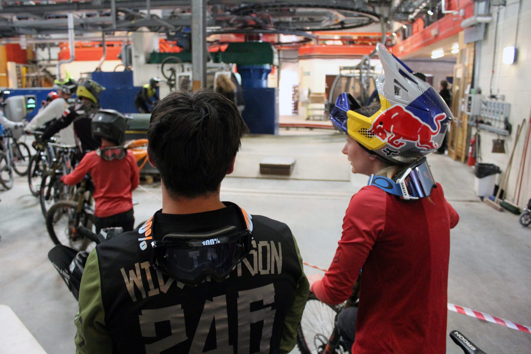 Sunday is a bit of a strange day. We’re on track before 9am and what a wakeup call that is. We manage 2 practice runs and on the second I follow Binnsy over the Hoofer. We’re not doing the World Cup Hip because the time difference between insiding the 2 turns before it and then rolling it and getting up high on both turns and hitting it isn’t that great. At least that’s what we’re telling ourselves. “Did you compress for the Hoofer?” Mike Taylor asks. “Pedaled at it, compressed, popped with everything I had, even pulled up with my cleats. Might’ve been a bit much, I landed in the berm”.