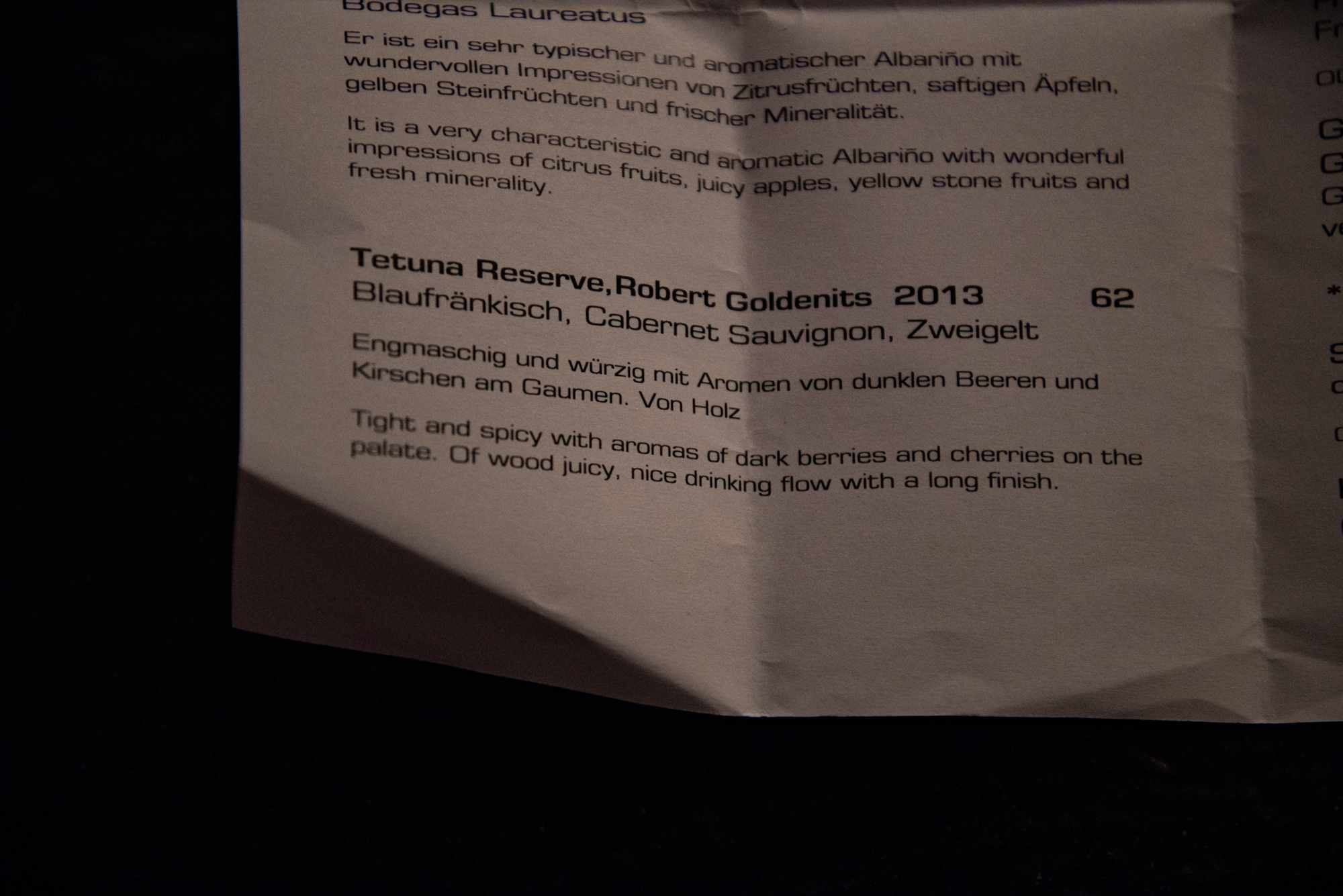 ‘With wood juicy’. I don’t even want to know what that is. Hotel Grischa adding the comical wine notes.
