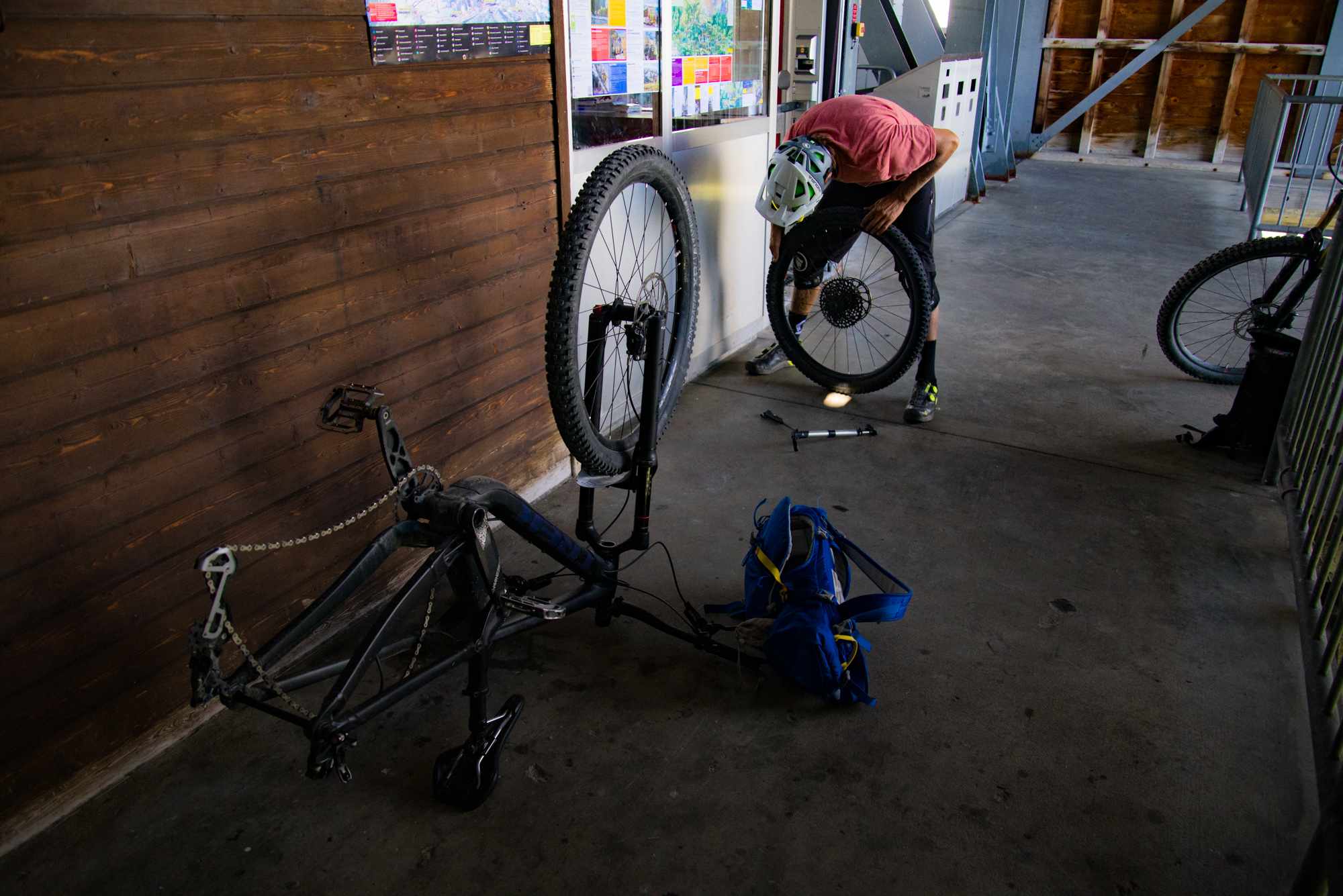 Puncture #1 of the trip at around the 2000m mark having dropped off the top of the Jokobshorn. Rafi went into full guide mode and wouldn’t let me fix it myself.