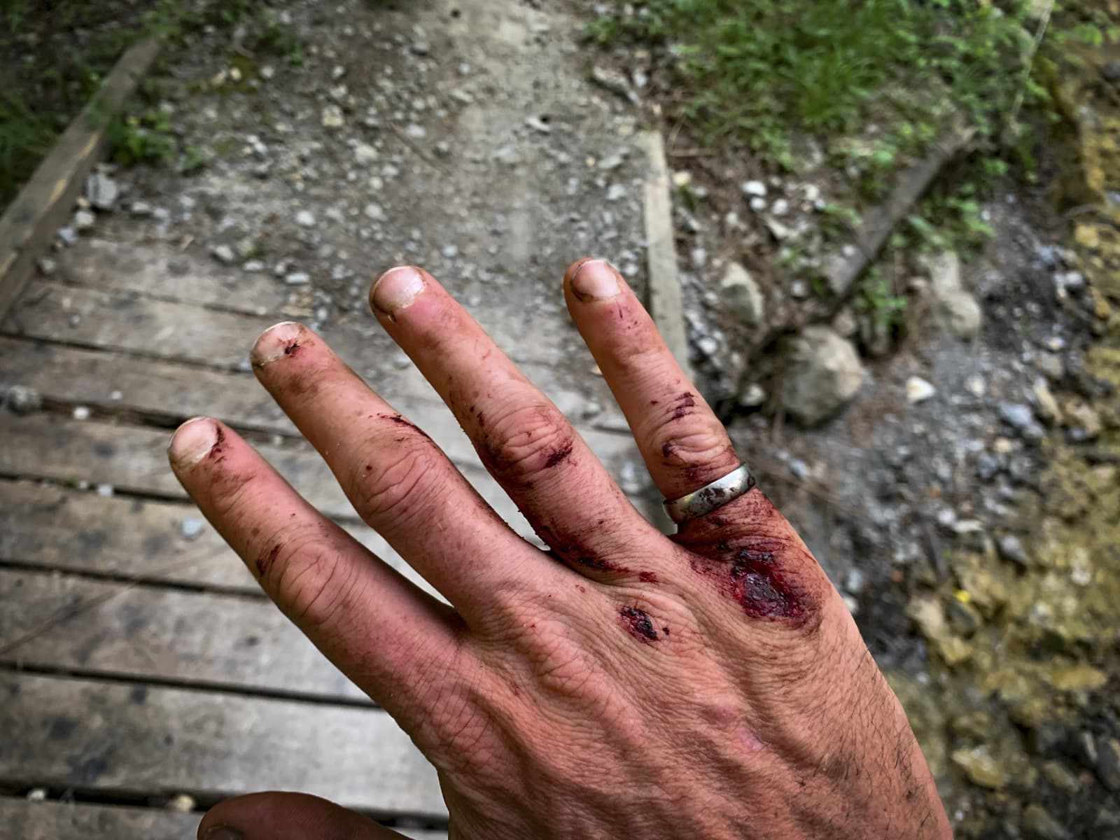 It’s an unusual piece of hand-eye coordination to try to slap someone’s chest as they essentially ride into you. Once again, my memories are more of a collection of snapshots rather than fully formed. Sliding backwards, my timing chip beeping successfully as I get carried down the trail by a former pro-downhiller. Our eyes widened and looking at each other, waiting for one another to fall; breaking out into manic laughter as we eventually grind to a halt a metre or two lower than where I started.