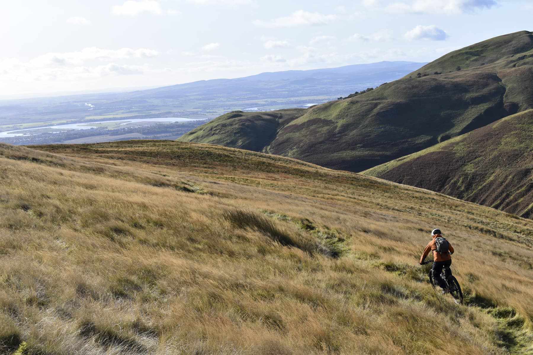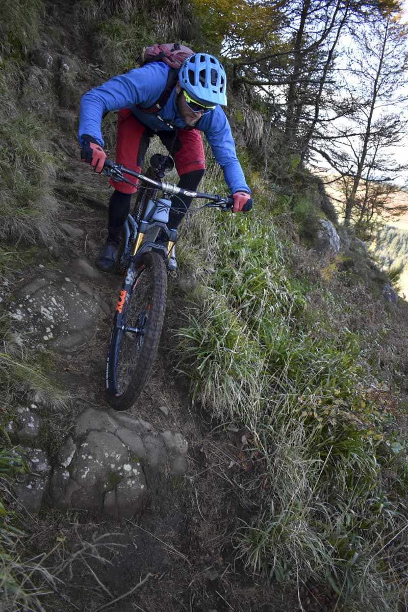 Leaving the summit behind, we dropped saddles as we made our way at speed towards Andrew Gannel Hill, our final summit of the day, which ultimately led us to the steep-sided, glacially eroded valley that would take us directly to our van far below us in Tillicoultry. Having first ridden this descent well over 20 years ago, I was excited about getting reacquainted with it. Regarded as an old school classic, it is now overlooked by the winch and plummet brigade who think mountain biking begins and ends with purpose-built trails. Their loss is our gain, however, as it meant we had the trail entirely to ourselves. Despite being a favourite descent back in the days when stems were long, saddles were high and wheels were small, it is no easy pushover on today’s long, low and slack bikes of choice.