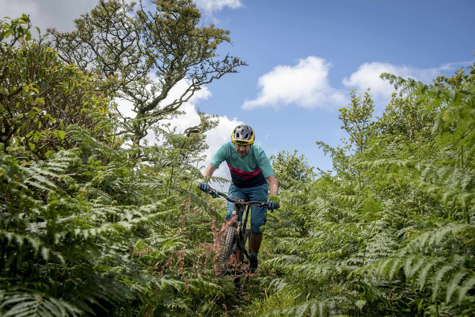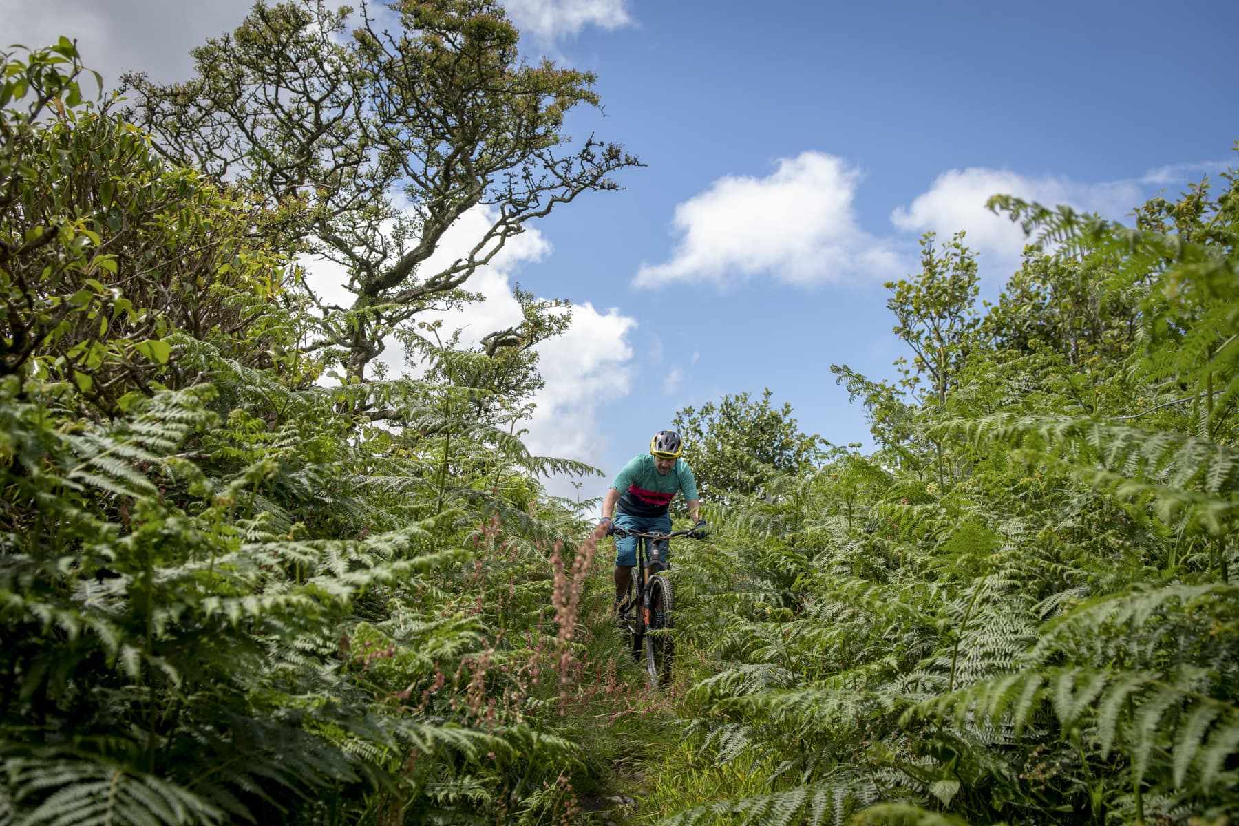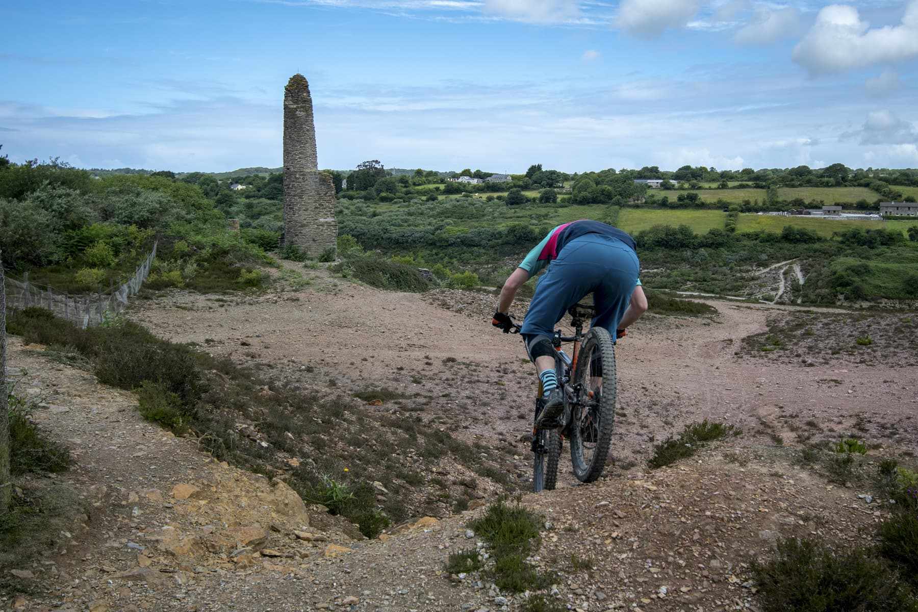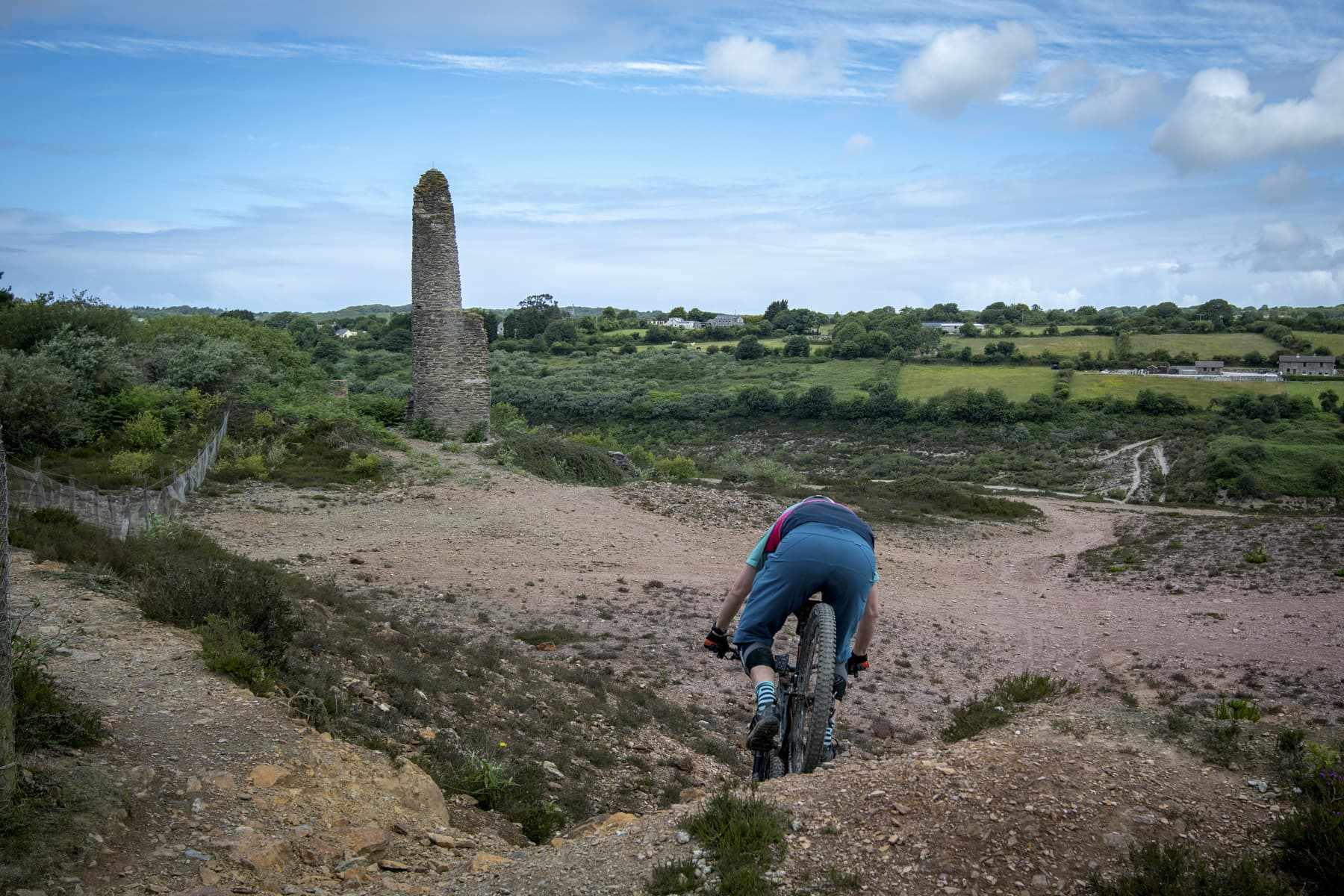 The Poldice Valley was mined from around the 16th century; firstly for tin, and then – as the need for it increased – for copper, and by the turn of the 20th century for arsenic. It closed in 1930. The valley is littered with spoil heaps from these old mine works – and a lot of them have been built upon. There are proper ‘built’ jump park features: drops, doubles and tabletops, alongside more natural – but still spicy – downhill trails and plenty more besides. They even run national cross-country races here – so there’s plenty of stuff to get your teeth into. The Coast to Coast trail runs up the valley bottom with all of this to the left; there’s a turn up a steep climb through some of the built stuff, which is known by the locals as ‘Mars’ for obvious reasons – it’s sparsely vegetated, and a pretty peculiar place to ride – towards the woods of United Downs.